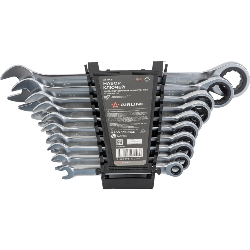 абор ключей AIRLINE комбинированных трещоточных 10 предм. 8,10,12,13,14,15,17,19,22,24мм пласт.держат. AT-10-51
