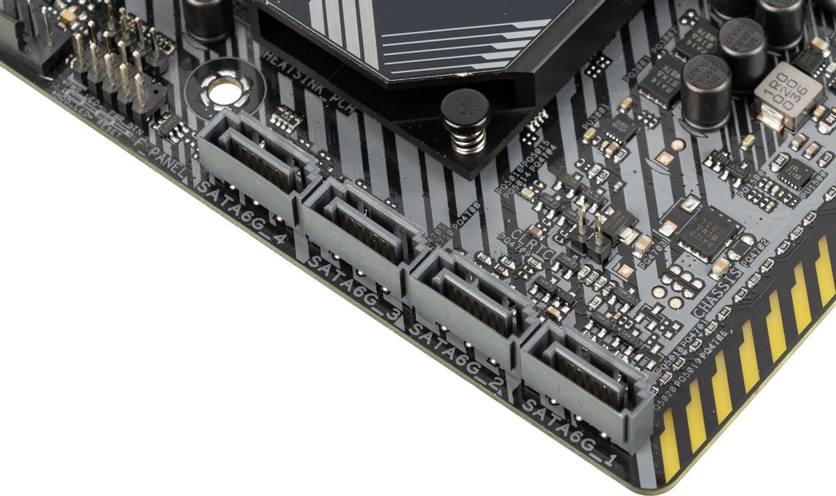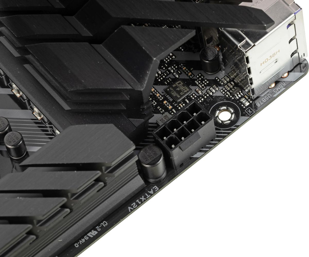 На каждый из 10 каналов приходится по одной ферритовой катушке. ШИМ-контроллер Digi+ VRM EPU ASP1106CGQW. Все радиаторы изготовлены из алюминиевого сплава. В качестве термоинтерфейса везде используются терморезинки разной толщины.