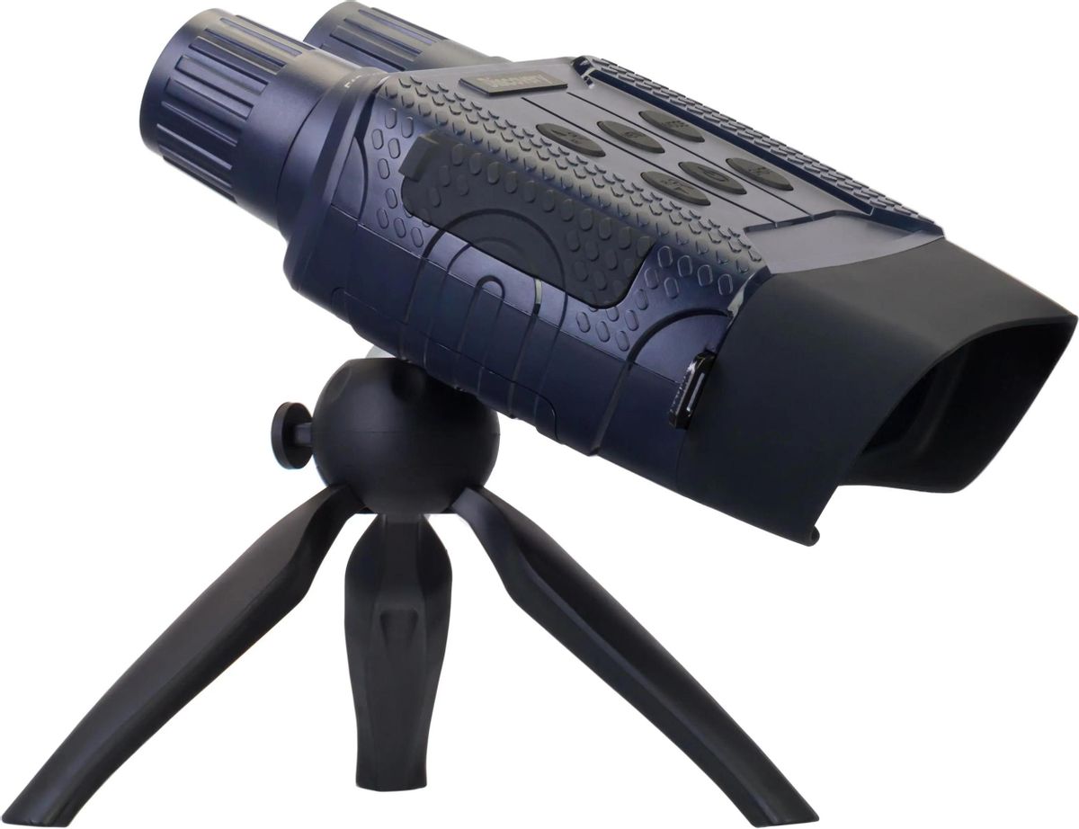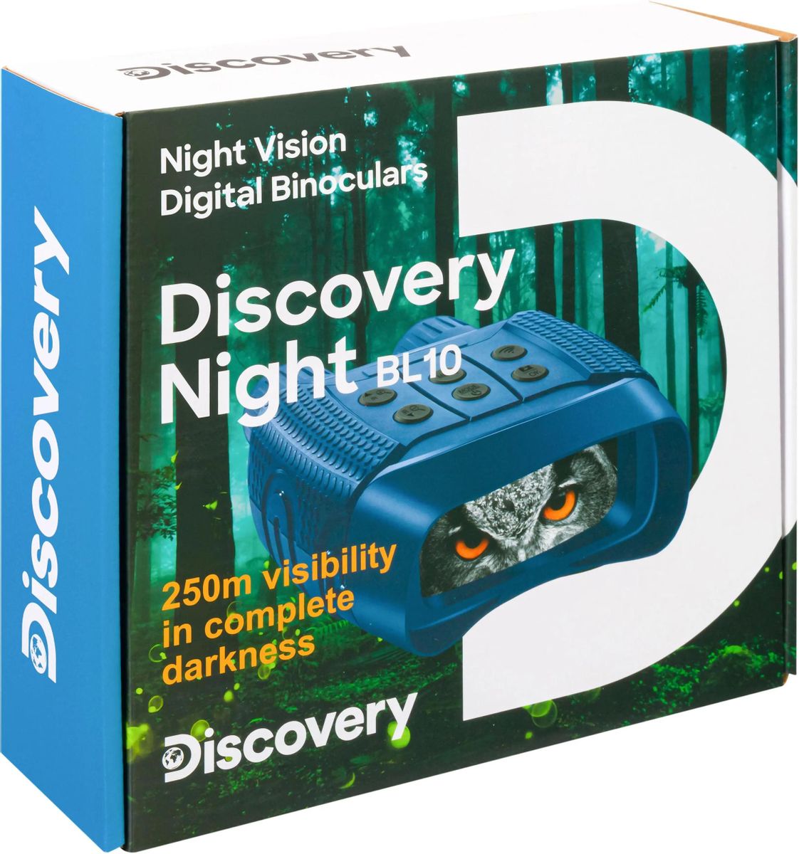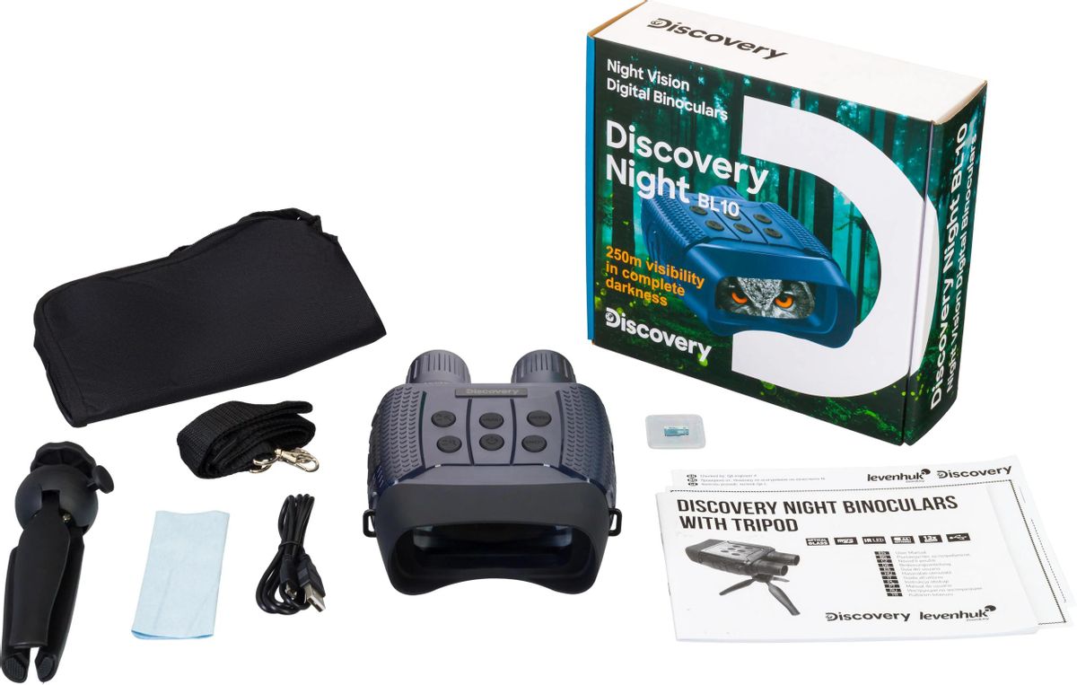 Discovery Channel (Дискавери ченэл) – всемирно известный научно-популярный телеканал о науке, технологиях, исследованиях и приключениях. Захватывающее сочетание историй разных жанров помогает взглянуть под разными углами на людей, места, организации и события, которые формируют наш мир. Discovery вдохновляет миллионы людей во всем мире, предлагая возможность открыть новое и утолить жажду познания. Мы с гордостью представляем серию оптики Discovery, произведенную Levenhuk при поддержке Discovery. Цифровой бинокль ночного видения Levenhuk Discovery Night BL10 – это два прибора в одном. Так как внутри установлен не боящийся засветки цифровой преобразователь, этот ПНВ можно использовать и ночью, и днем. Таким образом, он при необходимости спокойно заменит собой классический полевой бинокль. Также в приборе установлен рекордер, позволяющий записывать фото и видео. Сферы использования Levenhuk Discovery Night BL10: охота, охрана территорий, спортивное ориентирование, разведывание местности и многое другое. Для наблюдений в полной темноте на расстоянии в 250 метров Все оптические элементы сделаны из стекла с нанесением просветления на основе диоксида кремния. Благодаря этому бинокль эффективно пропускает свет, что позволяет ему в любых условиях демонстрировать четкую и контрастную картинку. В дневное время хорошо различимыми во всех деталях будут объекты на удалении от 3 метров и более. Ночью обзор будет в пределах 250 метров. Отдельно рекомендуем использовать в полной темноте встроенную ИК-подсветку. Она улучшит видимость и будет незаметной для окружающих. Так как у подсветки есть 7 уровней яркости, ее легко адаптировать под любую наблюдательную задачу. Прибор может создавать цветное, черно-белое, ярко-зеленое изображение или изображение с эффектом цветной пленки. В ночном режиме цветное изображение недоступно. Возможность фото- и видеозаписи на карту памяти Этот прибор ночного видения также может записывать фото и видео при помощи встроенного рекордера. Доступен выбор разрешения кадра, запись ведется на карту памяти. При необходимости перенести отснятый материал на внешний диск бинокль следует подключить к компьютеру через кабель miniUSB. Максимальное разрешение фотоснимков составляет 2048x1536 пикс. Кадровая частота видео – 30 кадров в секунду, достаточная для получения плавных роликов. Удобно, что кадры можно отсмотреть прямо на экране прибора – это помогает эффективнее использовать место на карте памяти, удаляя неудачные снимки. Удобный функционал для использования в полевых условиях Бинокль удобно лежит в руках, все кнопки управления сразу оказываются под пальцами. Благодаря влагозащите он способен стойко переносить многие полевые испытания. Питание обеспечивается стандартными батарейками или никель-металлогидридными аккумуляторами. На одном заряде ПНВ способен работать от 4 до 10 часов (реальная длительность работы зависит от интенсивности использования ИК-подсветки). Также прибор дополнен небольшим штативом складной конструкции. С его помощью бинокль можно устойчиво разместить где угодно и тем самым повысить стабильность изображения. Это особенно полезно при длительных наблюдениях и видеозаписи. Обратите внимание: ИК-подсветка (излучение прибора) в процессе работы может быть заметна для фото-, видеокамер и подобных электронных устройств.. Основные особенно