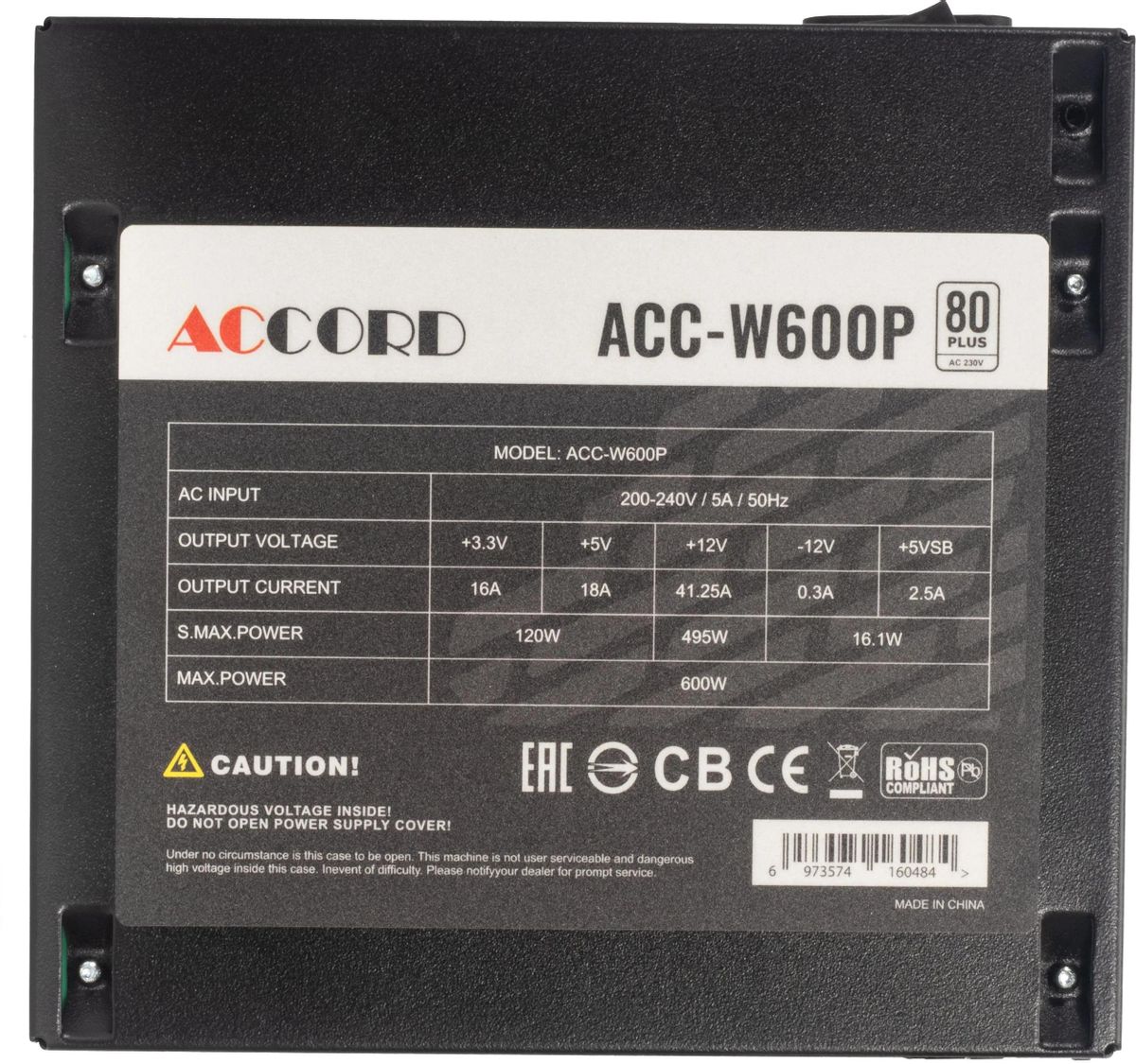 Блок питания Accord ACC-W600P, 600Вт, 120мм, черный