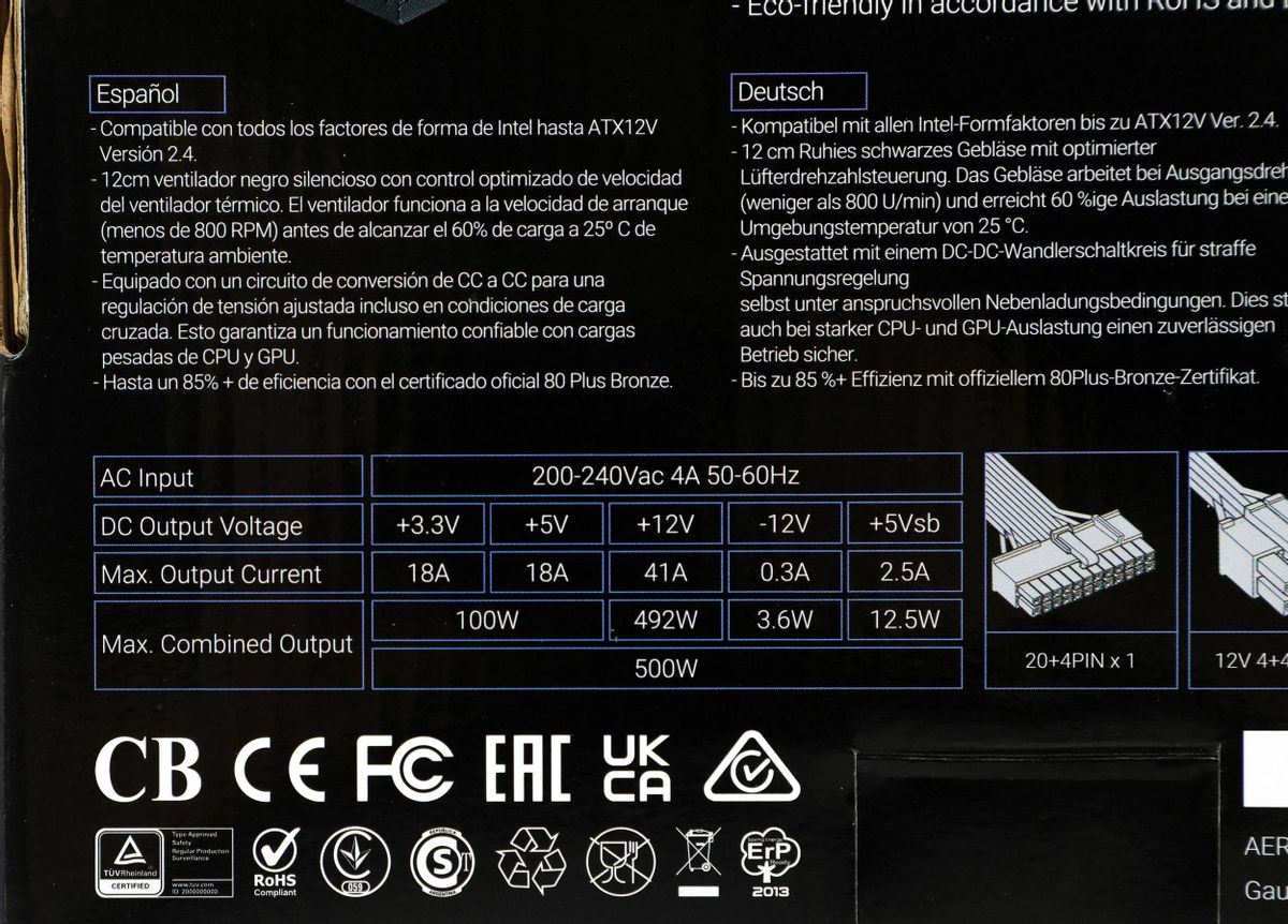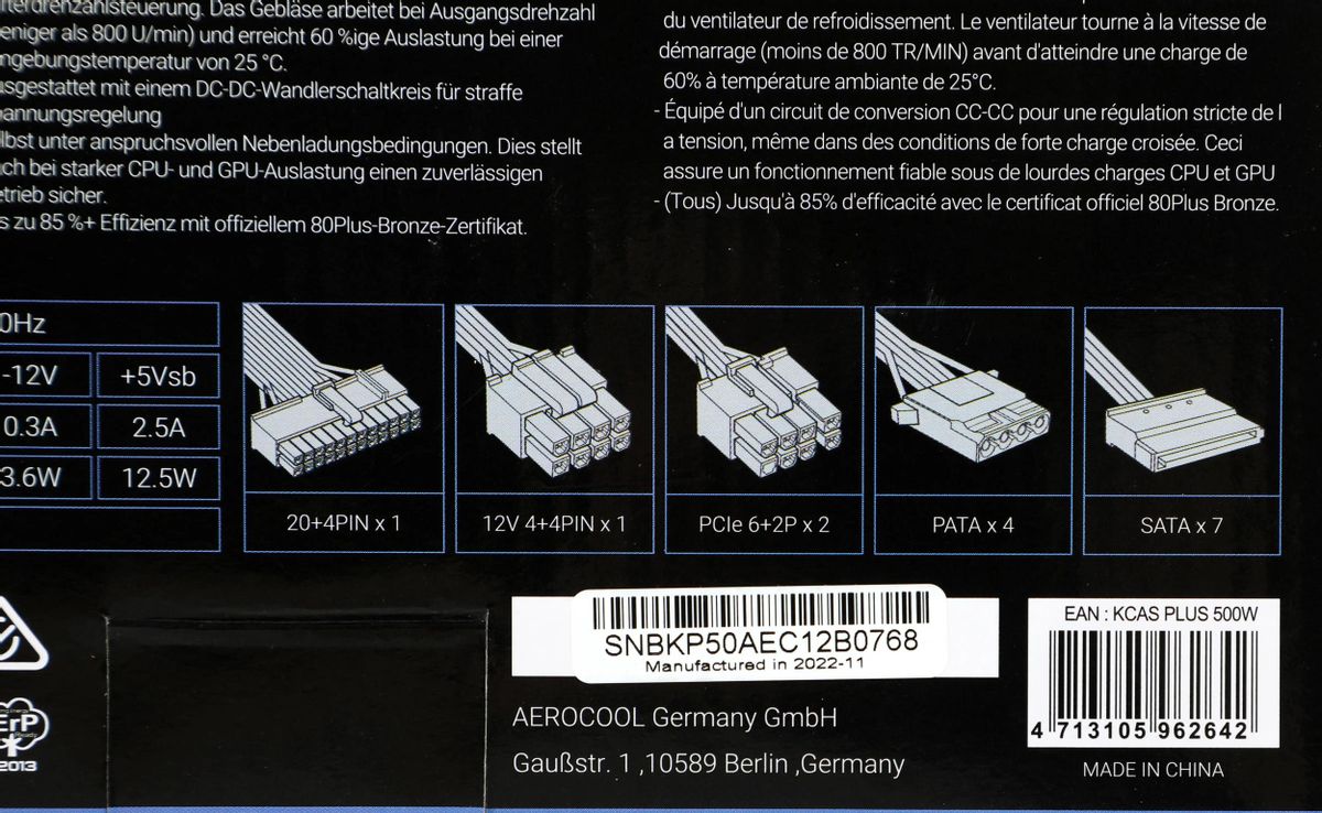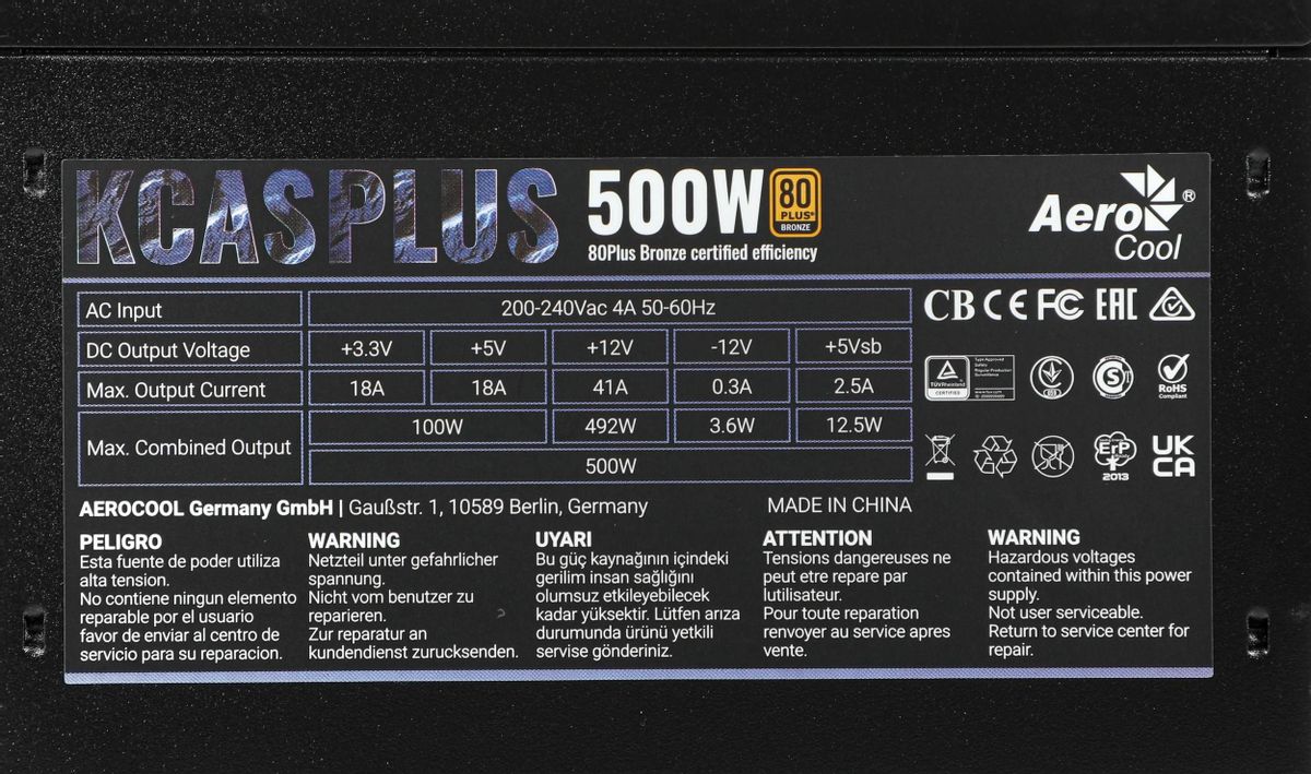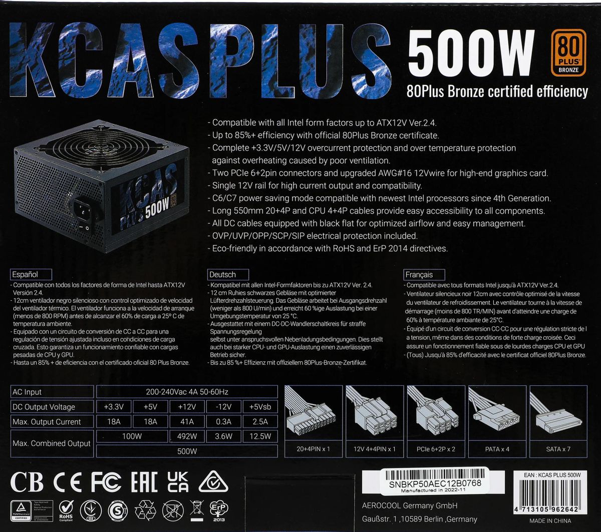 Блок питания Aerocool KCAS PLUS 500, 500Вт, 120мм, черный, retail [kcas-500 plus]