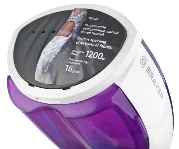 онструкция ручной Мощность 1200 Вт Объем бака для воды (бойлер) 0.09 л Съемный резервуар для воды да Время непрерывной подачи пара 5 мин Отсек для хранения насадок нет Телескопическая стойка нет Ручка для переноски да Цвет белый/фиолетовый мес Вес 0.92 кг Ean 9120099331272