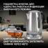 Оснащен интуитивно понятной панелью управления и 4 предустановленными температурными режимами (50, 80, 90 и 100 градусов Цельсия), а также функцией поддержания заданной температуры до 2 часов. Скрытый нагревательный элемент способствует быстрому нагреву и облегчает уход за чайником.