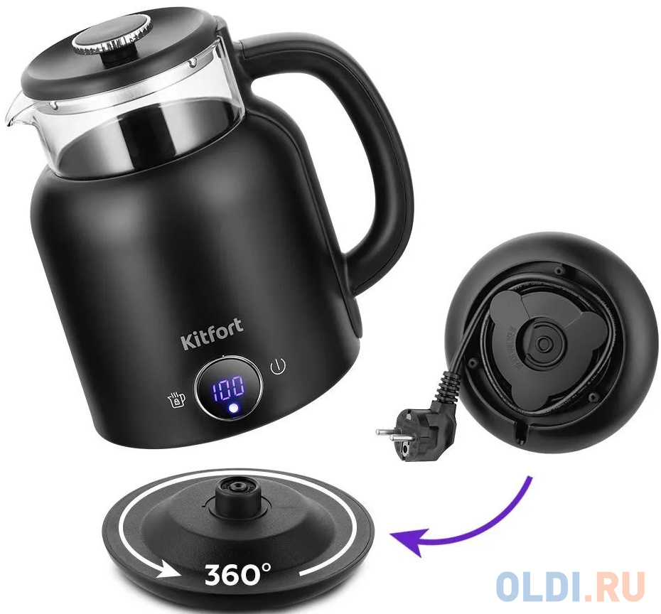 Чайник электрический KitFort КТ-6725, 1200Вт, черный