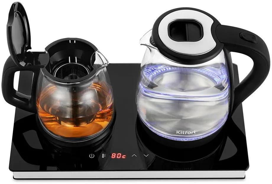 Чайный набор KitFort КТ-6181, 1500Вт, черный и нержавеющая сталь