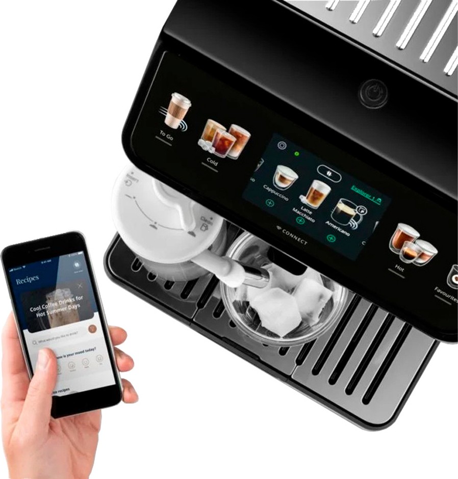 Дополнительный молочный контейнер для получения холодной молочной пены. Рецепты для приготовления холодных напитков. Специальная программа 2GO адаптирует все напитки под объем термокружки, которая идет в комплекте с кофемашиной.