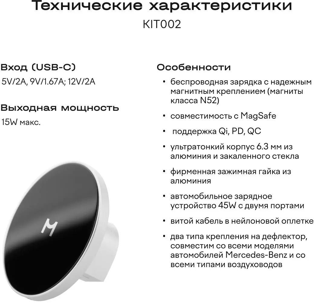 Держатель MAGSSORY KIT002 для смартфонов, магнитный, беспроводная зарядка, серебристый