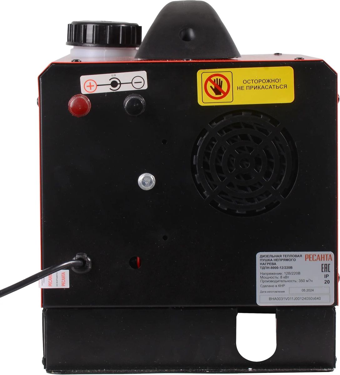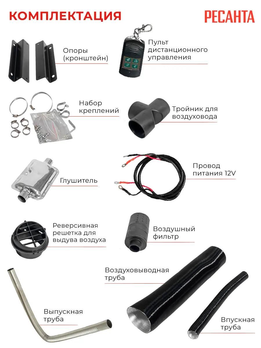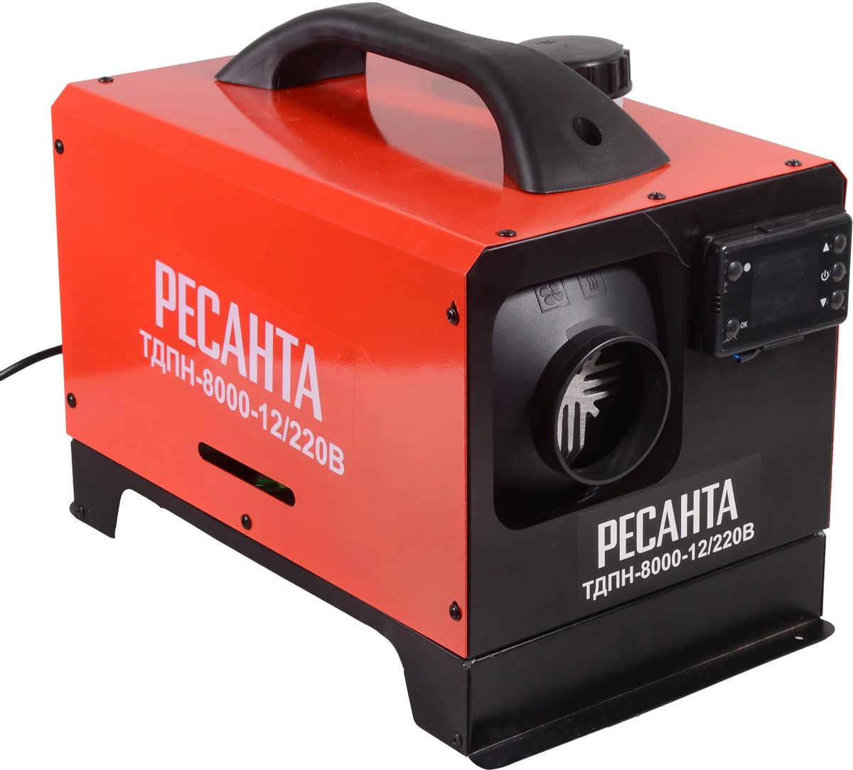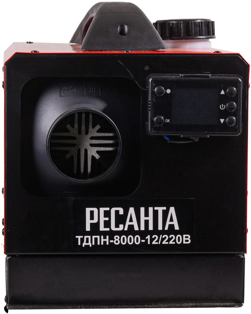 Дизельная тепловая пушка ТДПН-8000-12/220В Ресанта - это отопительный агрегат, основное предназначение которого заключается в быстром и экономичном обогреве таких нежилых помещений, как производственные цеха, сельскохозяйственные хранилища, строительные площадки; может применяться для отопления гаражей, домов, бытовок. Особенности: Климат контроль; Система безопасности; Информационный дисплей: Кнопка выбора настройки; Кнопка подтверждения; Индикатор темпертуры окружающего воздуха; Индикатор работы ручного/автоматического режима; Индикатор выбранного режима; Индикатор таймера; Индикатор параметров: температуры, время, напряженя; Индикатор работы отопителя; Кнопка увеличения температуры; Кнопка включения/выключения; Кнопка уменьшения температуры. Комплектация: Опоры (кронштейн); Набор креплений; Глушитель; Реверсивная решетка для выдува воздуха; Выпускная труба; Пульт ДУ; Тройник для воздуховода; Провод питания 12V; Воздушный фильтр; Воздуховыводная труба; Впускная труба.