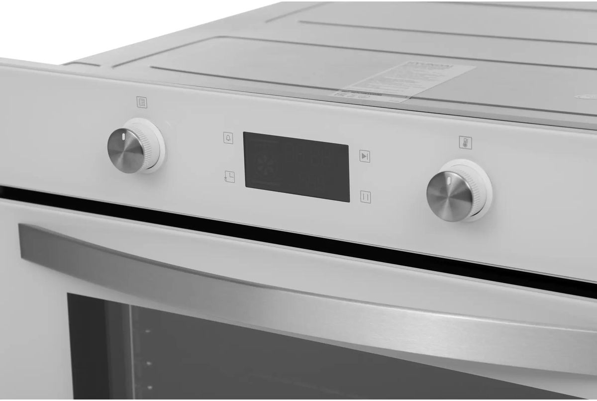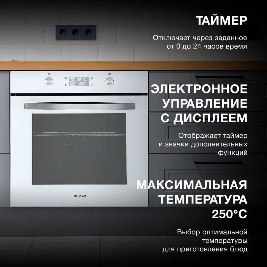 Стильный дизайн. Hyundai HEO 6646 WG выглядит элегантно и современно благодаря белой стеклянной дверце, серебристым переключателям и ручке. Модель гармонично впишется в интерьер светлой кухни.