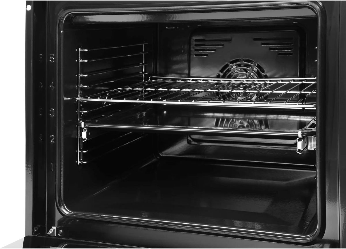 Камера на 82 л. Запекайте свиной окорок или утку, ставьте порционные горшочки или массивную чугунную жаровню, готовьте несколько блюд одновременно. В духовке пять уровней размещения противня. Модель оснащена одноуровневыми телескопическими направляющими. С ними проще и ставить блюда в духовку, и доставать. В комплекте идут противень и решетка.