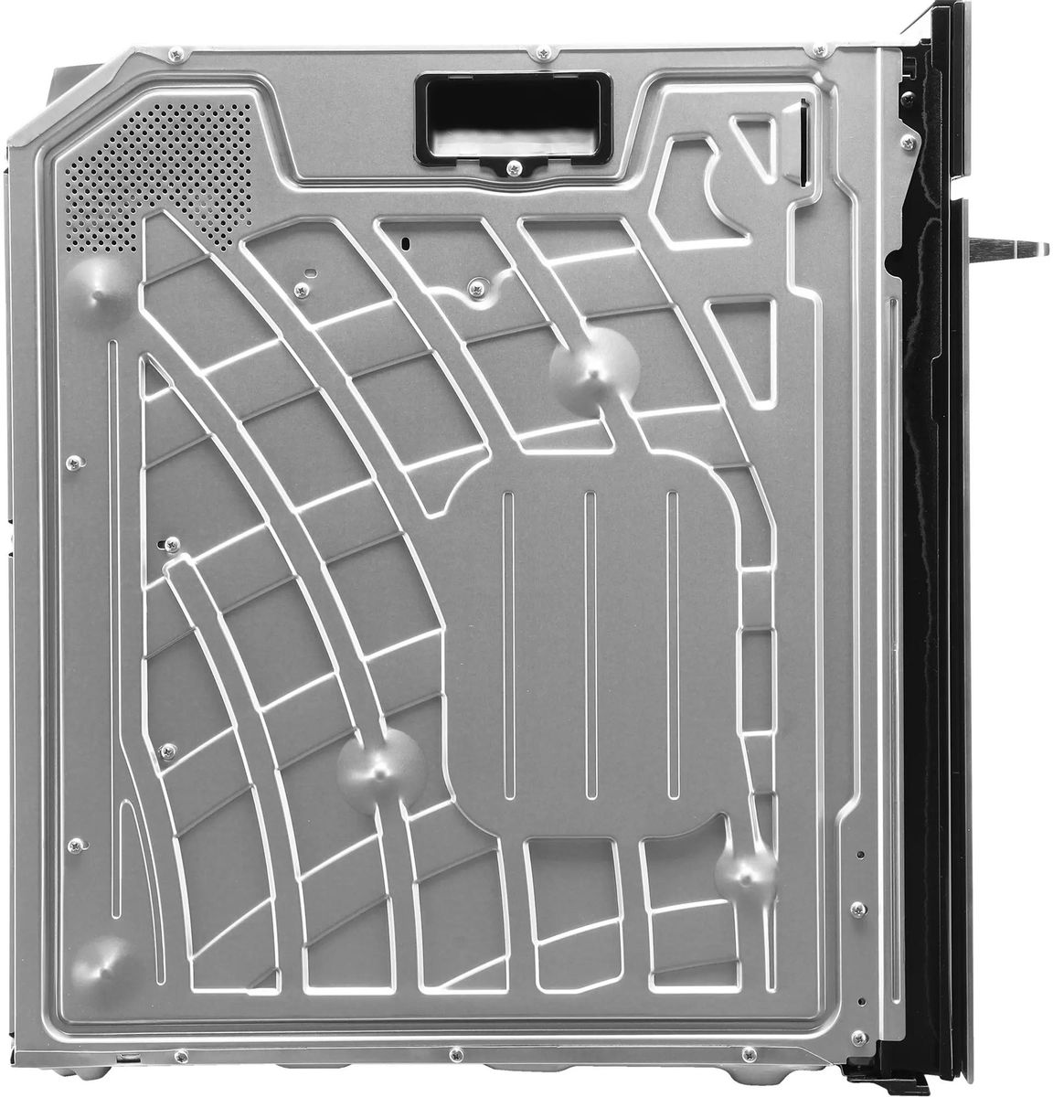 4-слойная стеклянная дверца способствует сохранению температуры внутри духовки и исключает вероятность термических травм при случайном касании внешней поверхности. Отсутствие болтов и рамок внутри облегчает уход.