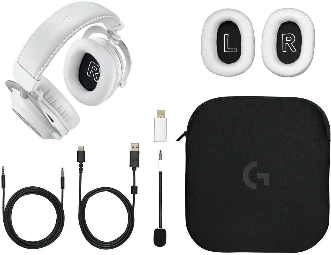 Гарнитура игровая Logitech G Pro X 2 Lightspeed, для компьютера и игровых консолей, мониторные, Bluetooth/радио/3,5 мм, белый [981-001270]