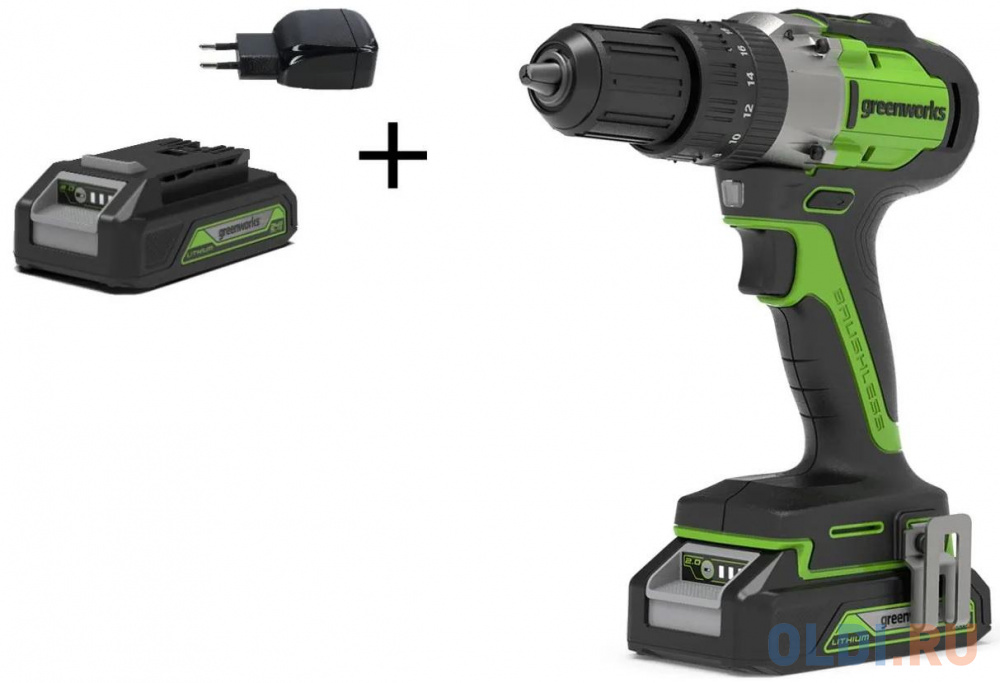 ккумуляторная дрель-шуруповерт GreenWorks GD24DD60K2 3704107UA