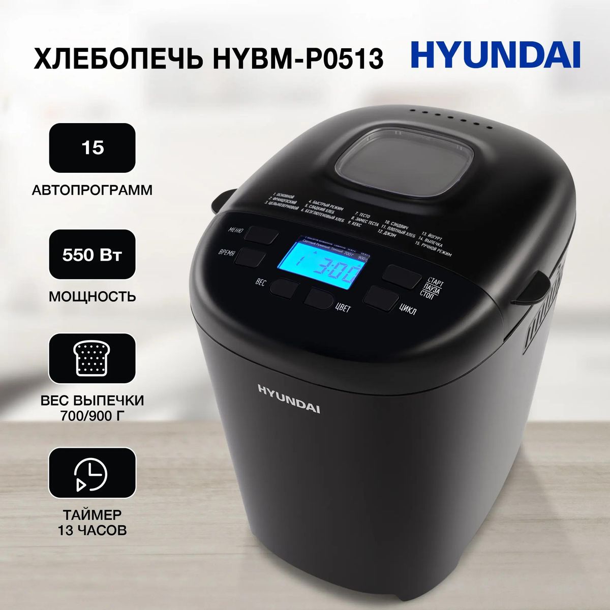 Хлебопечь HYUNDAI HYBM-P0513, черный