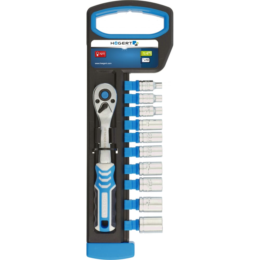 абор торцевых головок HOEGERT TECHNIK 10 шт, с трещоткой 1/4, 72 зубца HT1R334