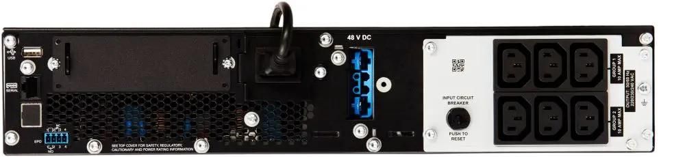 На выполненный в черном цвете ИБП APC Smart-UPS SRT SRT1500RMXLI производитель дает гарантию в пять лет. Устройство предусматривает монтаж в стойку размером 19 дюймов. Здесь предусмотрена возможность автоматического тестирования батареи, которое осуществляется при включении такого прибора. Производитель оснастил его одним необслуживаемым кислотно-свинцовым аккумулятором. Время его полной зарядки составляет шесть часов.