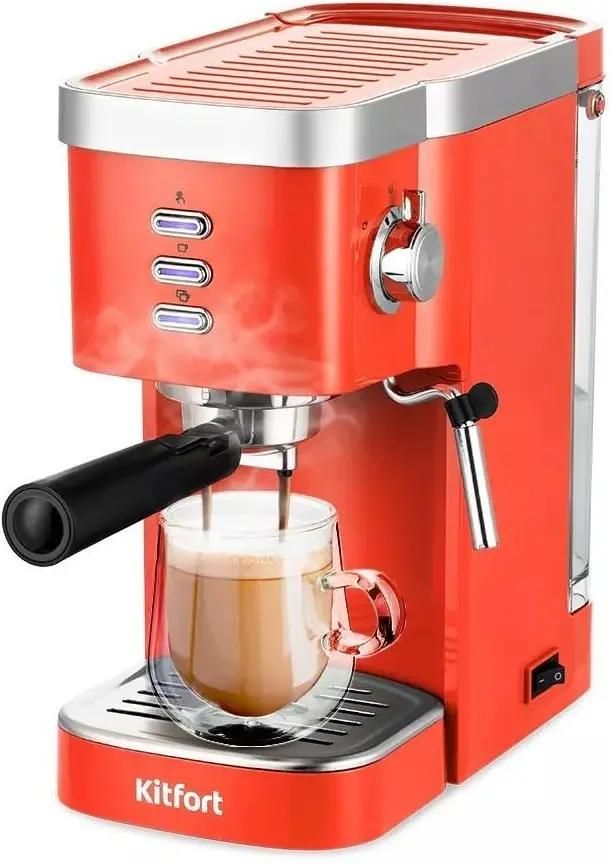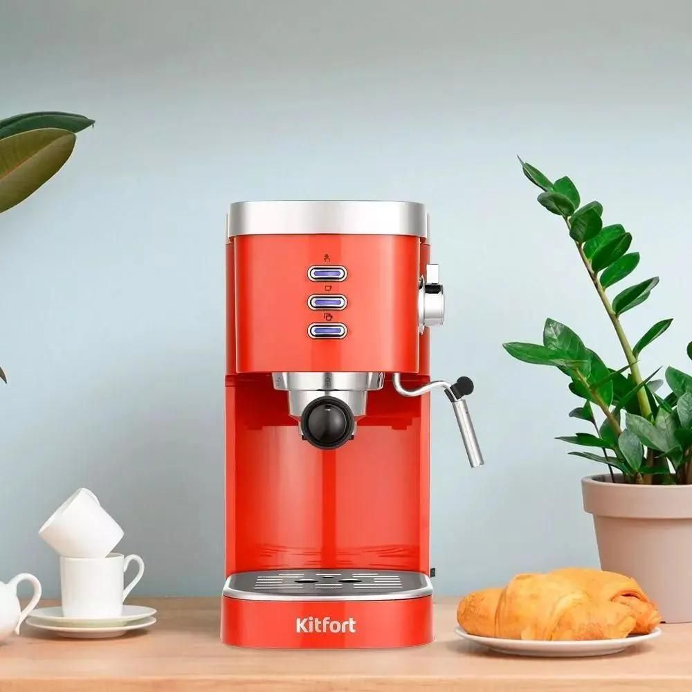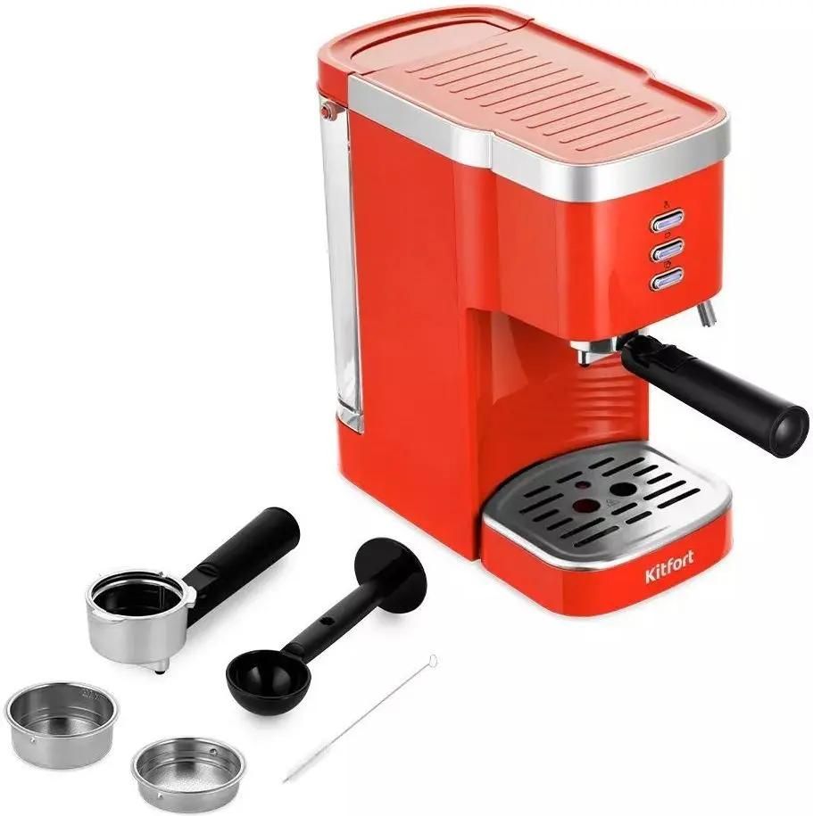 Кофеварка KitFort КТ-7114-1, рожковая, красный