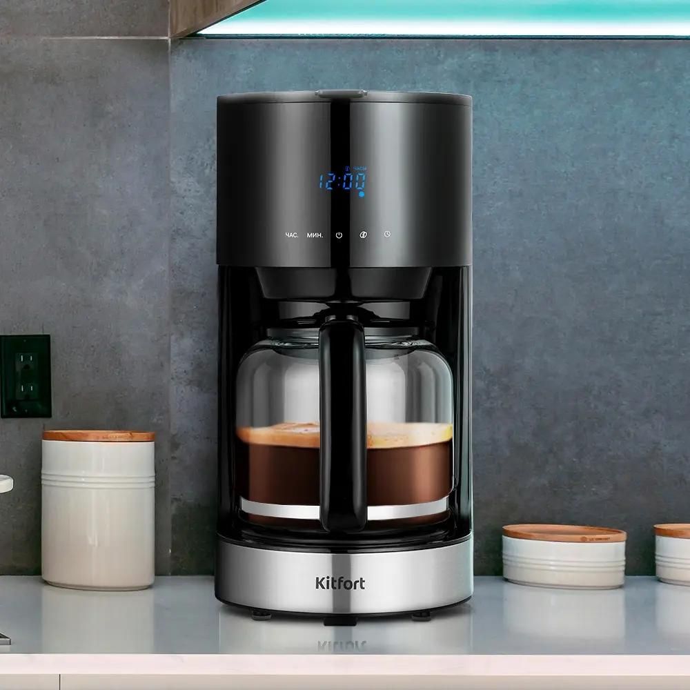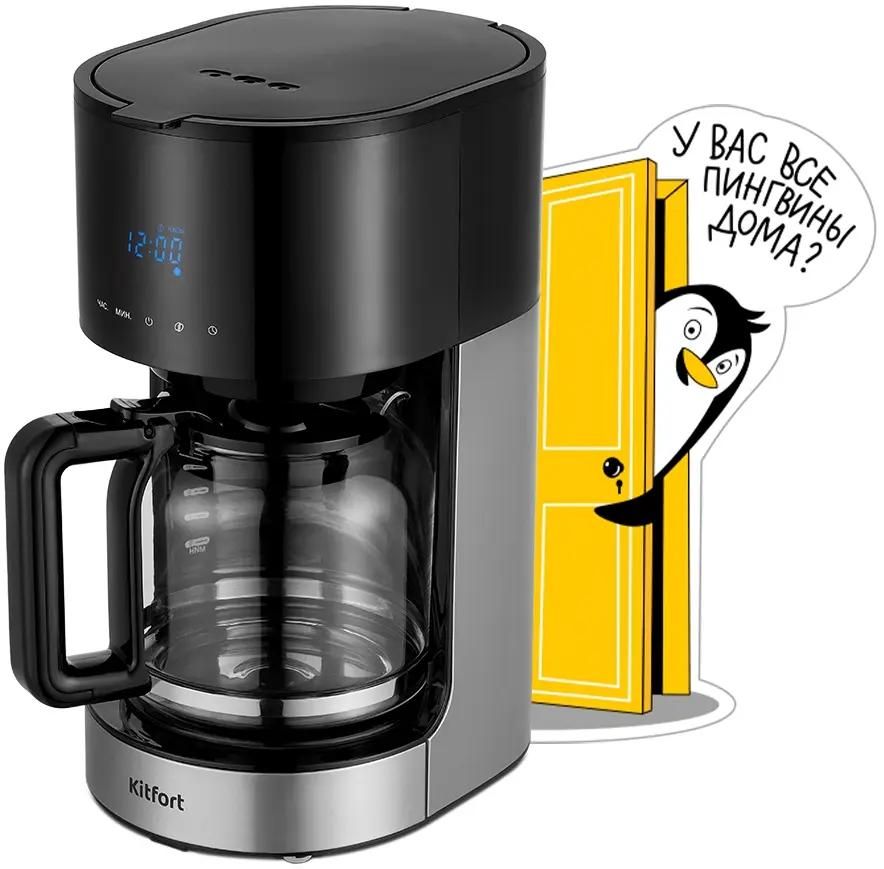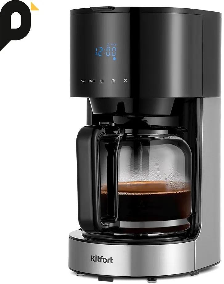 Кофеварка KitFort КТ-7297, капельная, черный / нержавеющая сталь