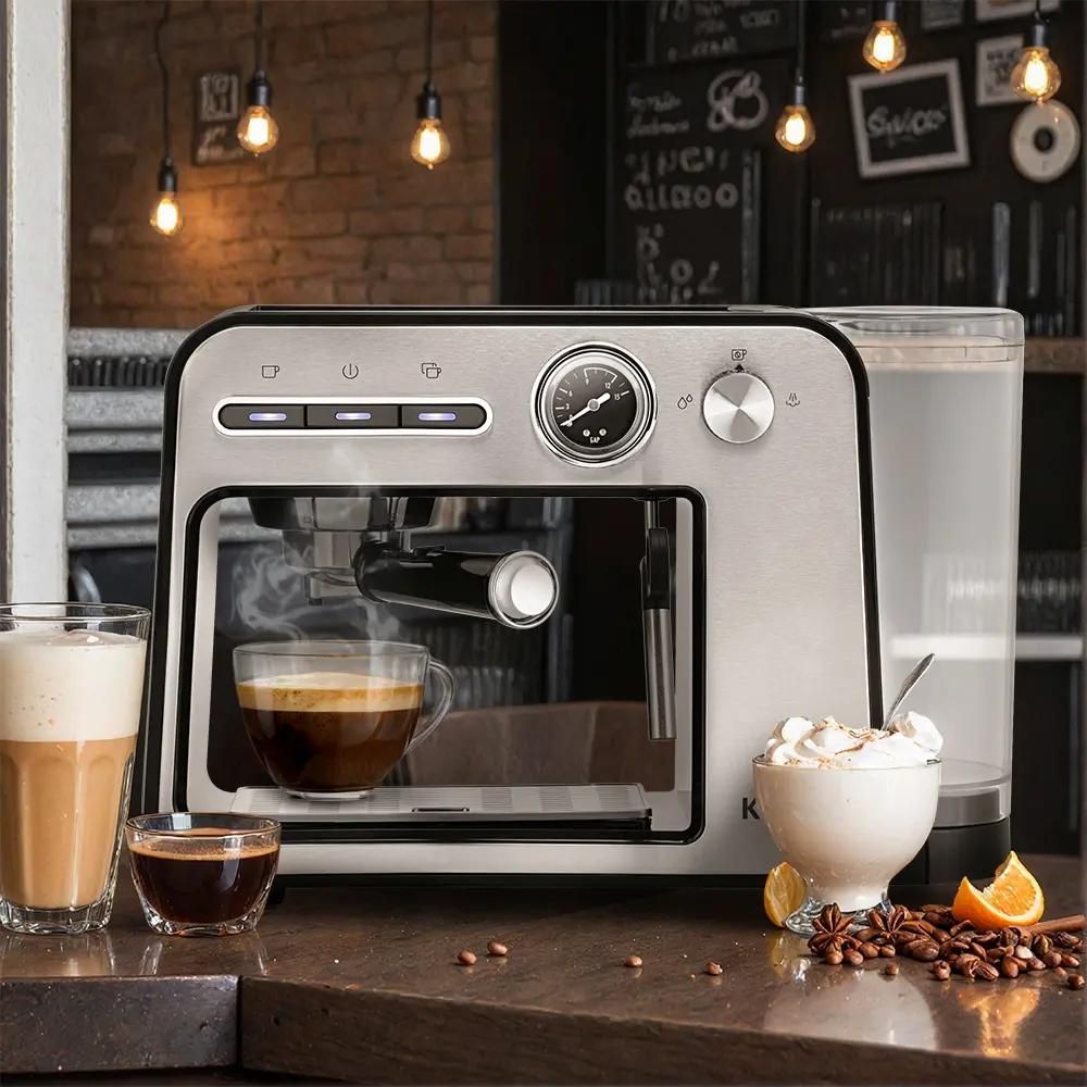 Кофеварка KitFort КТ-7515, рожковая, серебристый