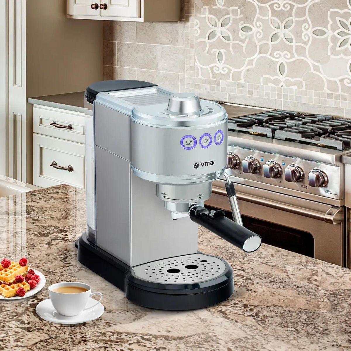 Кофеварка Vitek VT-1515, рожковая, серебристый