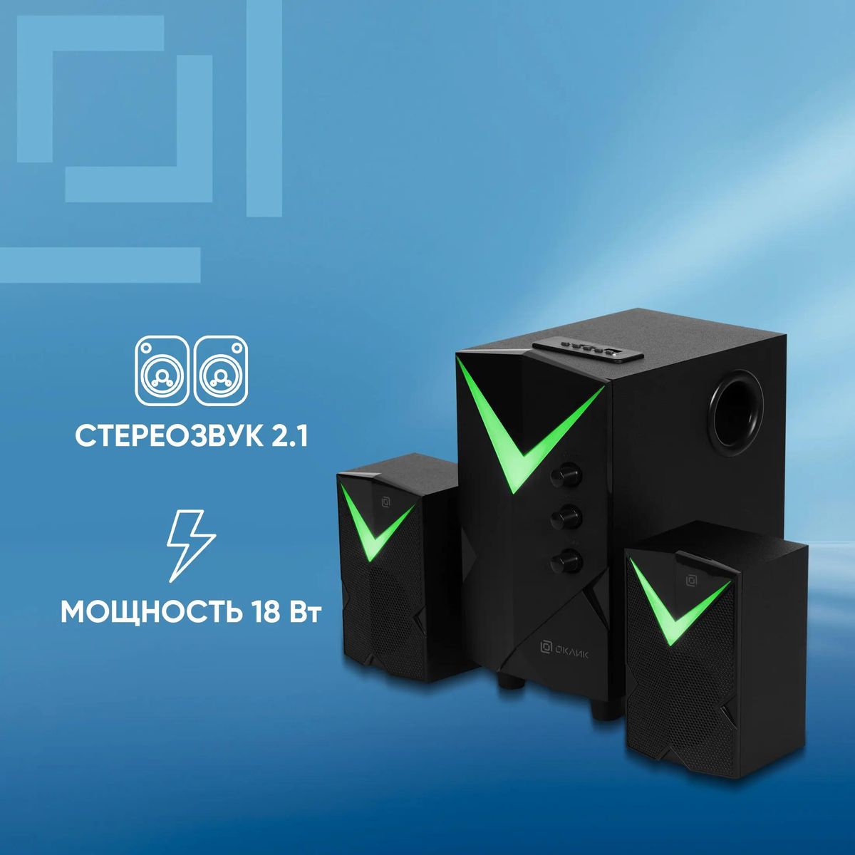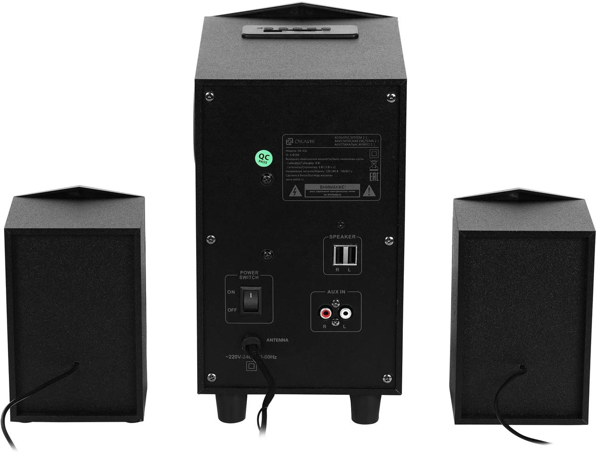 Стационарная акустическая система 2.1 Оклик OK-426 обеспечит возможность воспроизведения звуков с ПК, ноутбука и любого иного устройства с аналоговым аудиовыходом. USB, SD/MMC и Bluetooth интерфейсы обеспечивают возможность чтения мультимедийных файлов с внешних носителей, а встроенный тюнер и антенна – прием сигналов радиостанций.