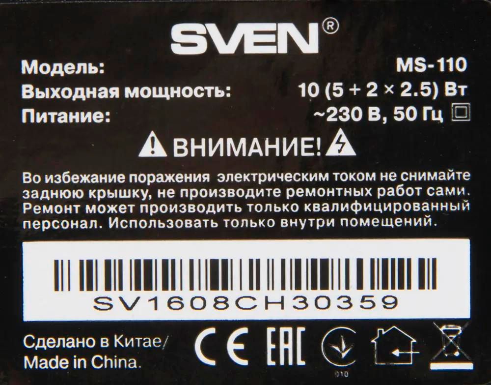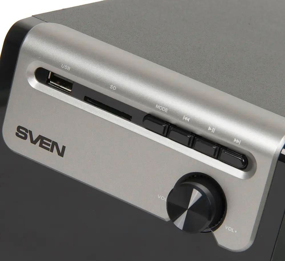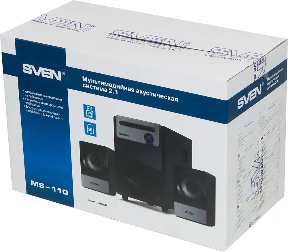 Колонки SVEN MS-110 прекрасно подойдут на роль персональной акустики, актуальной и дома, и в офисе. Компактные габариты и чистый, безупречный звук - визитная карточка модели, что по достоинству оценят меломаны. Система 2.1 обеспечивает глубокие басы, которые действительно пробирают, и качественное вокальное или инструментальное сопровождение. Стильный внешний вид и свободная от лишних регуляторов лицевая панель позволяют органично вписать каждую составляющую в интерьер. Колонки SVEN MS-110 могут работать как с данными от подключенного компьютера, так и со съемными носителями. Устройство оборудовано модулем чтения SD-карточек памяти, способно распознать флешки и съемные жесткие диски, активированные через USB-кабель. Модель проявит себя и при прослушивании музыки, и при просмотре фильмов.