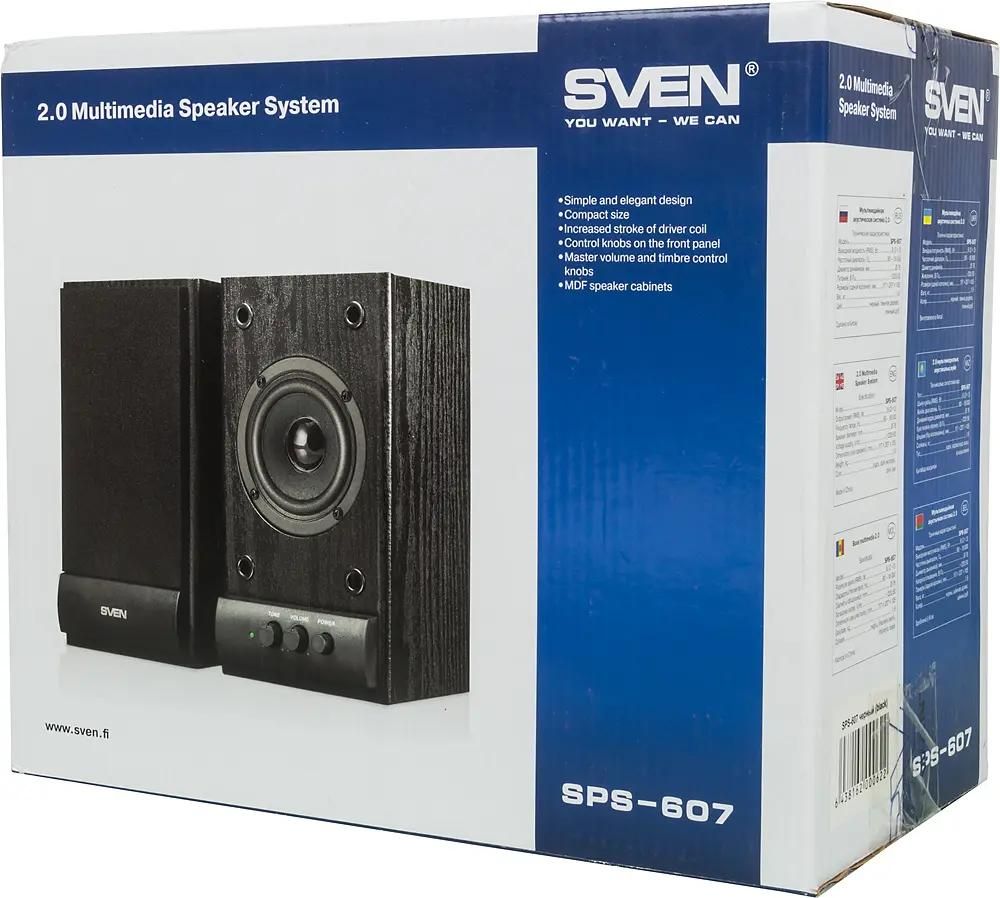 птимальным вариантом для использования в небольшом по площади помещении является акустическая система SVEN SPS-607, состоящая из двух настольных колонок вертикального типа. При суммарной мощности 6 Вт они воспроизводят качественный звук в диапазоне частот от 80 Гц до 18 кГц. Выполнены колонки в корпусе из дерева. Такое решение позволяет погасить различные искажения звука, в результате чего он становится более естественным и чистым. Способствует этому и увеличенный ход катушки динамиков.