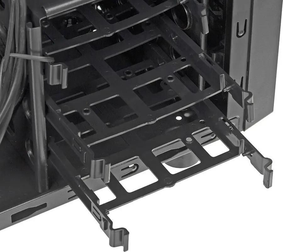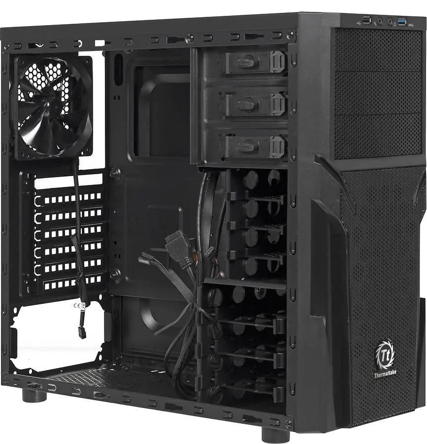 Если у пользователя есть навыки самостоятельной сборки компьютера, то он может воспользоваться корпусом ATX THERMALTAKE Versa H21. Модель выполнена в традиционном черном цвете из прочной стали и оснащается качественной системой вентиляции и фильтрами, защищающими от пыли. Для проведения монтажа можно воспользоваться специальными креплениями. Аккуратно уложить и закрепить провода и кабели можно на задней стенке.