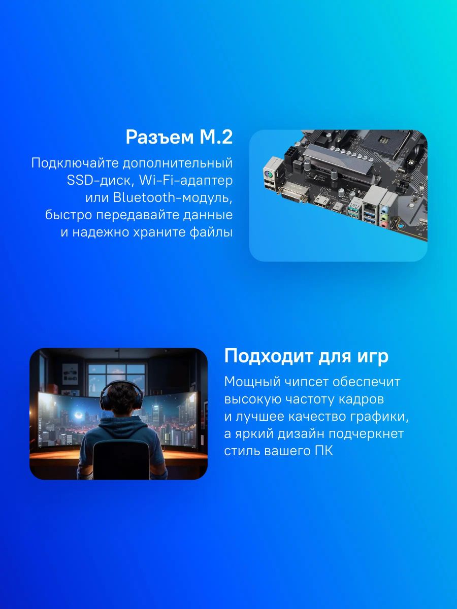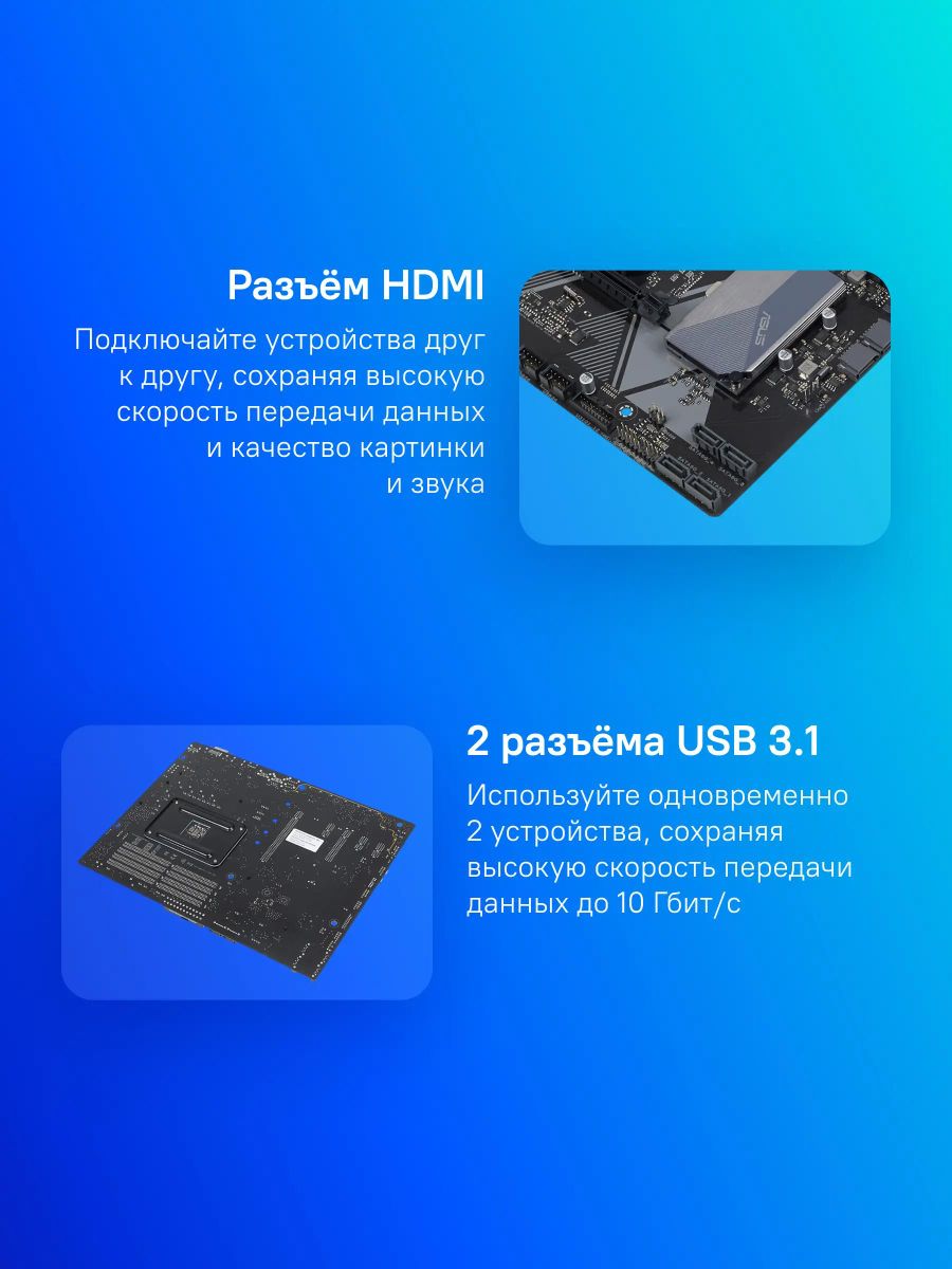 Для хранения большого количества информации, обработки графических данных, просмотра интернет-страниц и много другого используйте материнскую плату ASUS PRIME B450-PLUS с процессором SocketAM4. Благодаря ей работоспособность вашего компьютера увеличится и прослужит долгое время. А с помощью USB и HDMI-разъемов вы сможете подключить клавиатуру, мышь или любое другое устройство.