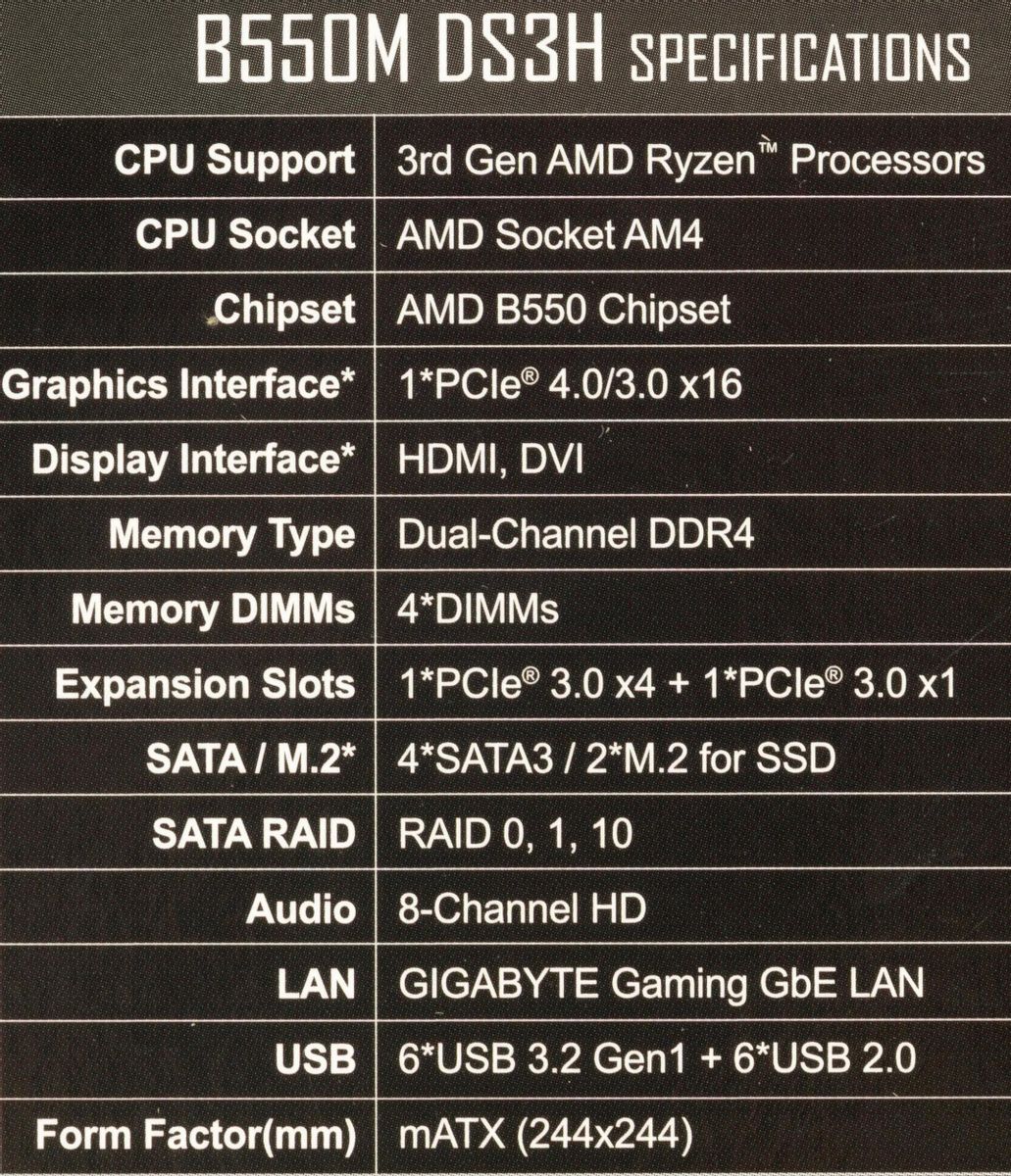 Материнская плата GIGABYTE B550M DS3H, SocketAM4, AMD B550, mATX, Ret