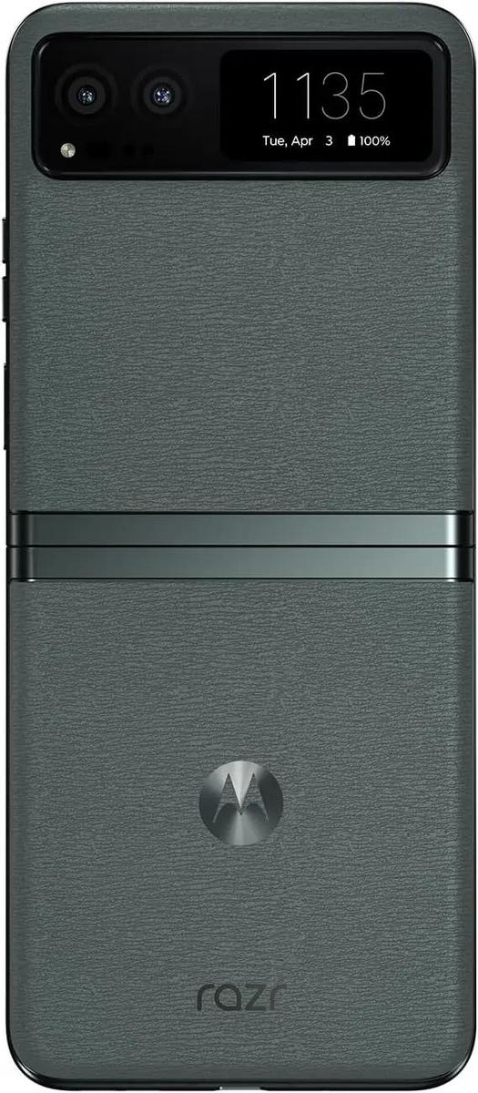 Смартфон Motorola Razr 40 5G получил прочный алюминиевый корпус с отделкой искусственной кожей и позиционируется, как «раскладушка» нового поколения. Складная конструкция делает его очень удобным для ношения в кармане. Механизм раскладывания довольно тугой, зато можно зафиксировать верхнюю часть телефона под разным углом. Основной экран диагональю 6,9 дюймов создан на базе AMOLED-матрицы и имеет пиковую яркость на уровне 1400 нит, что позволяет просматривать HDR-контент, а также читать сообщения под прямыми солнечными лучами. Благодаря разрешению 2640x1080 пикселей изображение выглядит четким и детализированным, а частота обновления 144 Гц гарантирует плавную навигацию по меню.
