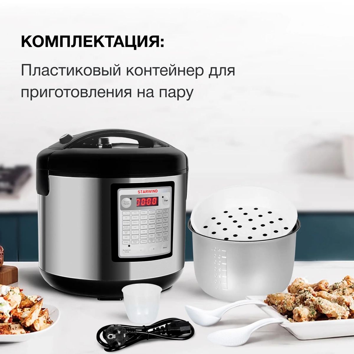 При приготовлении блюда в мультиварке STARWIND SMC4201 домохозяйка будет уверенна в том, что ей не придется отмывать чашу от остатков пригоревшей пищи, так как она обладает качественным антипригарным покрытием. Функция пароварки позволит делать не только вкусные, но и полезные блюда, так как после обработки продуктов паром в них останется больше полезных компонентов. Благодаря чаше с отличной вместительностью (5 л) можно готовить еду впрок, чтобы ее хватило на целый день.