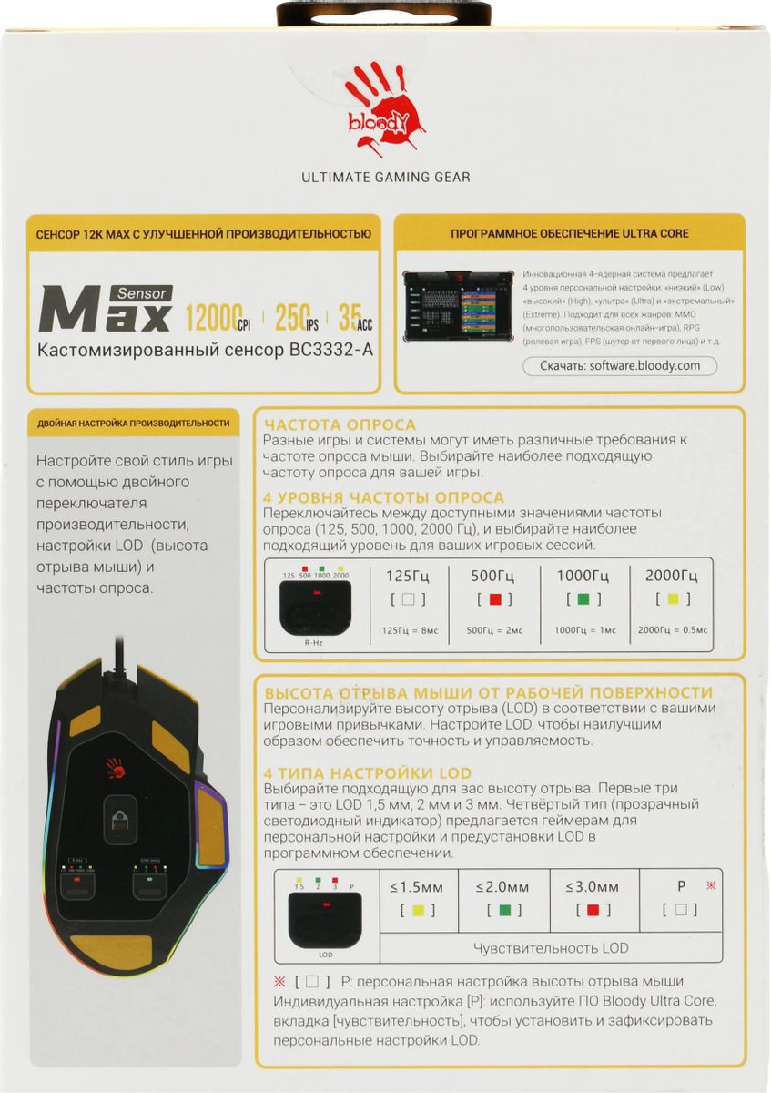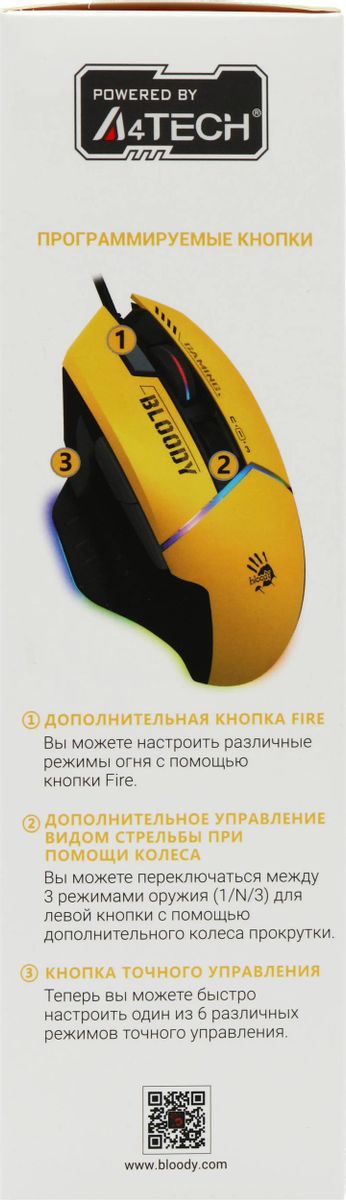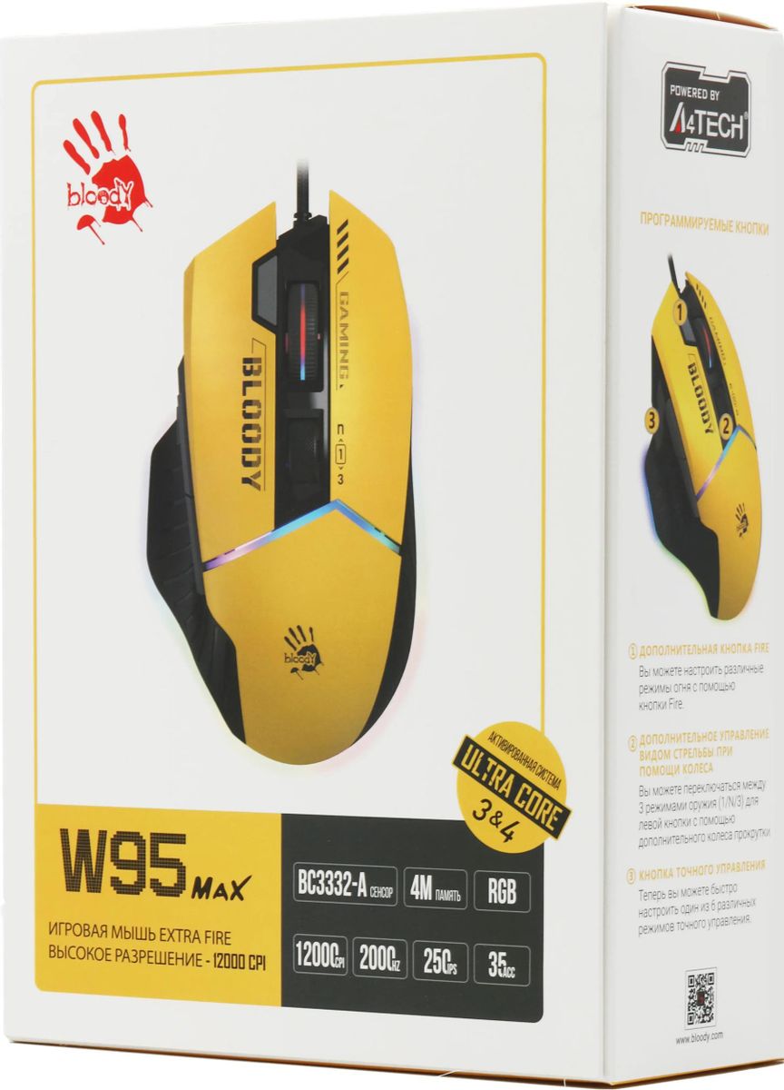 ышь A4TECH Bloody W95 Max Sports, игровая, оптическая, проводная, USB, желтый и серый [w95 max sports lime]