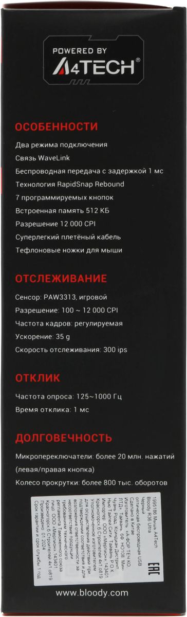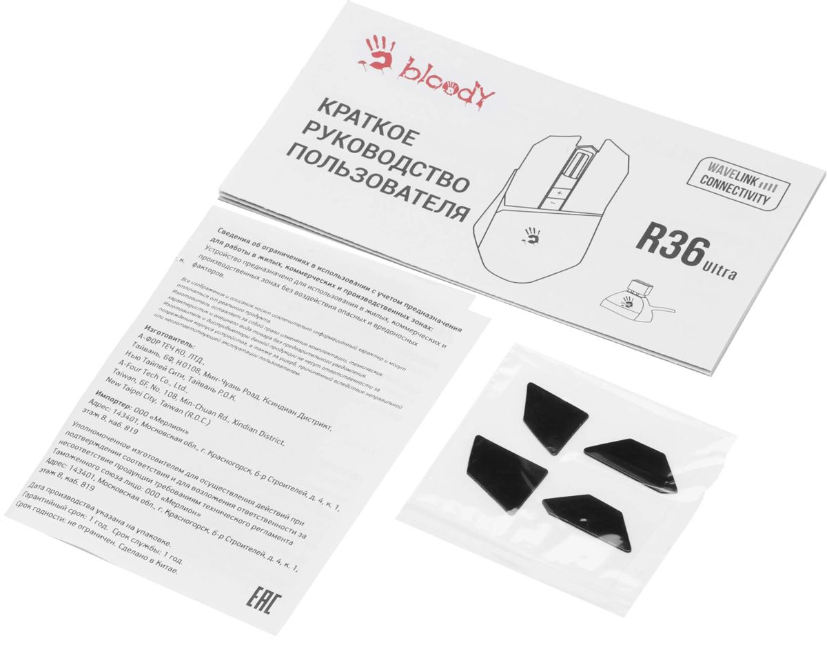 Мышь беспроводная A4TECH Bloody R36 Ultra, игровая, радио, оптическая, USB, 12000dpi, черный
