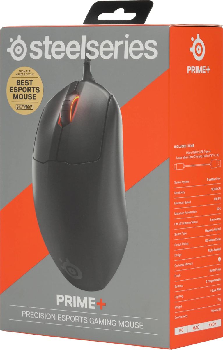 Мышь проводная SteelSeries Prime +, игровая, оптическая, USB, 18000dpi, черный [62490]
