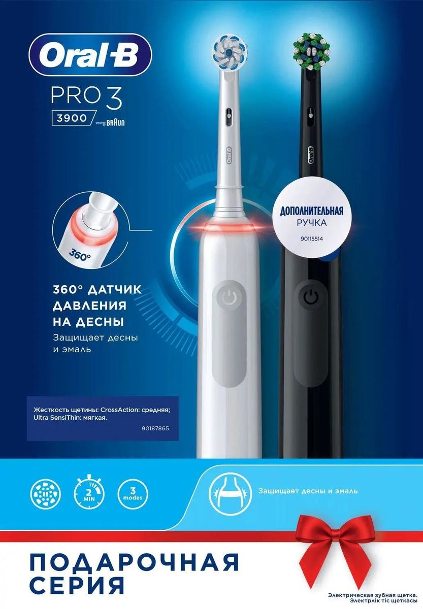 Набор электрических зубных щеток Oral-B Pro Series 3, насадки для щётки: 2 шт, цвет: белый и черный [d505.513.3x]