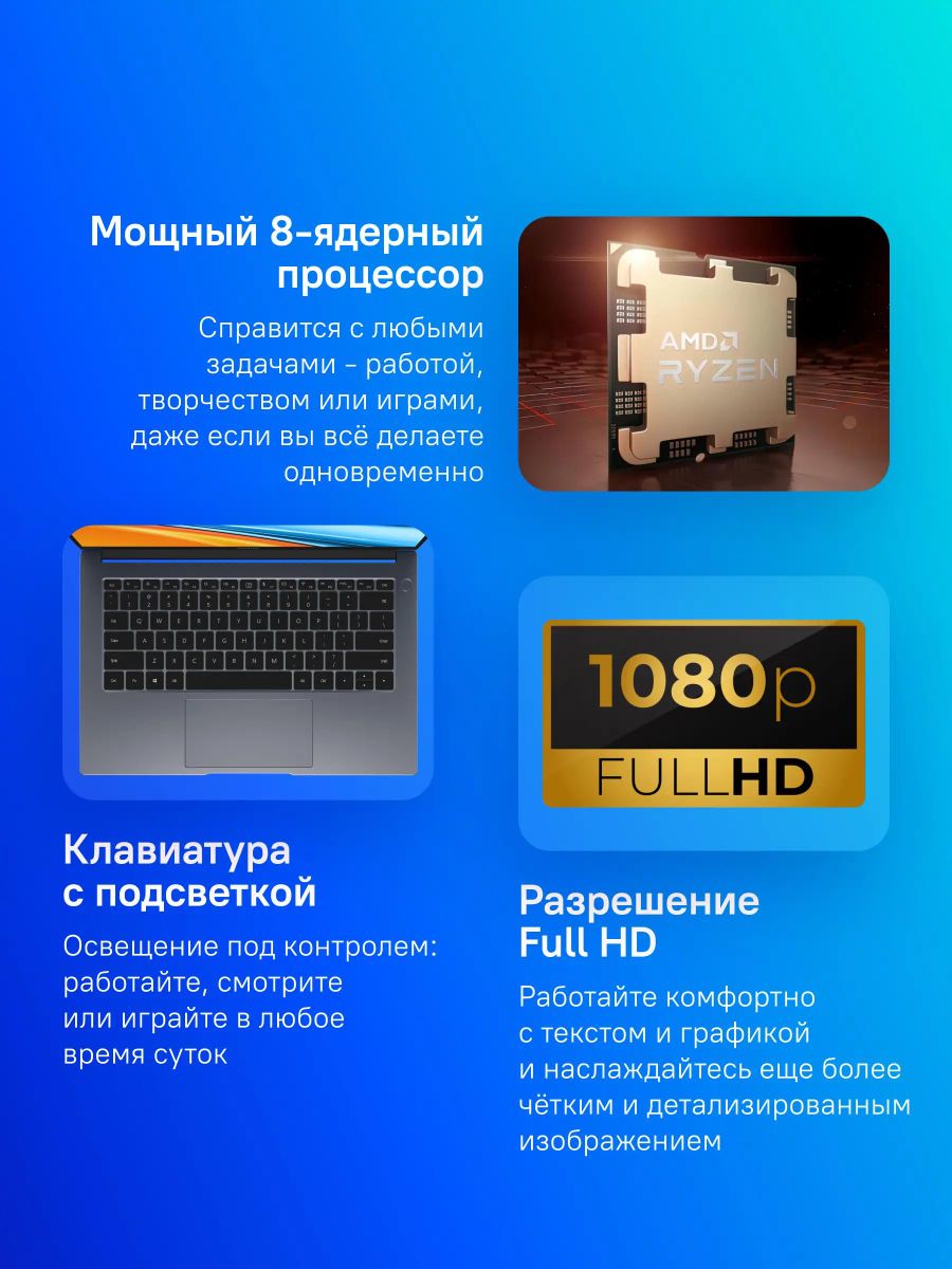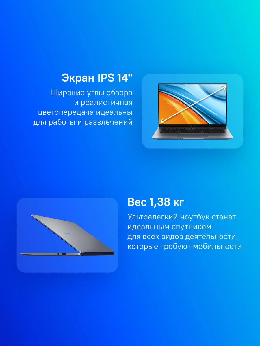 Ноутбук Honor MagicBook 14 NMH-WFP9HN 14", IPS, AMD Ryzen 7 5700U 1.8ГГц, 8-ядерный, 16ГБ DDR4, 512ГБ SSD, AMD Radeon Graphics, FreeDOS, серый [5301afvp]