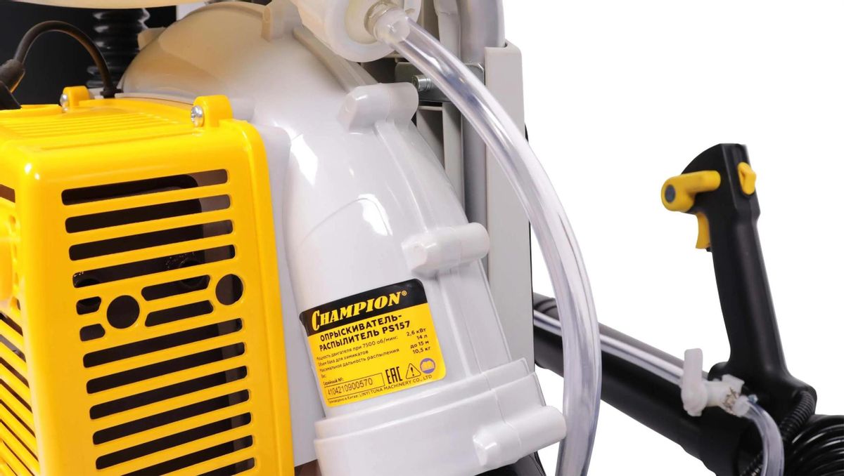 Опрыскиватель CHAMPION PS157, бензиновый, ранцевый, 14л, желтый/черный