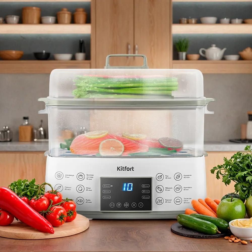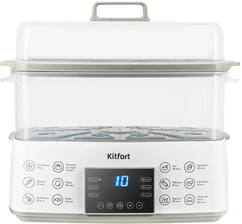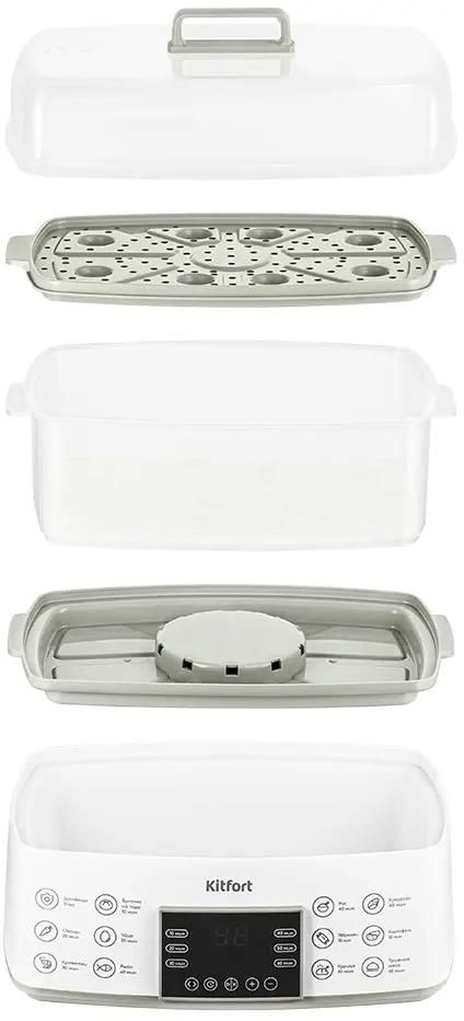 Пароварка KitFort КТ-6431, белый и серый