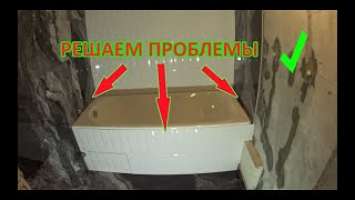 Монтаж чугунной ванны Roca Malibu. Щель между стеной и ванной, экран из кабанчика.