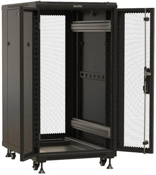 Шкаф серверный Hyperline TTBR-2268-DD-RAL9004 TTBR-2268-DD-RAL9004 напольный, перфорированная стальная передняя дверь, 22U, 600x1166x800 мм