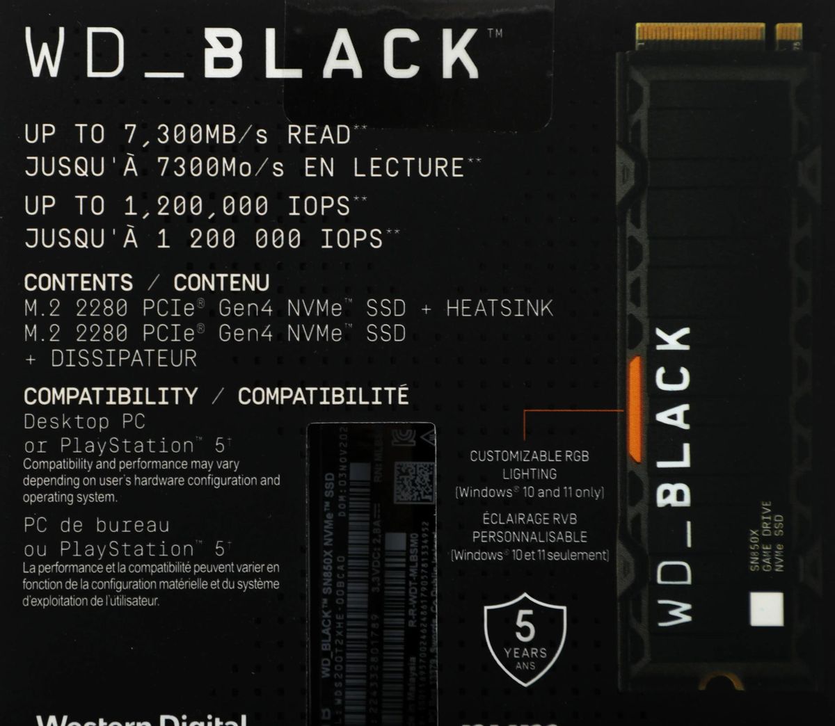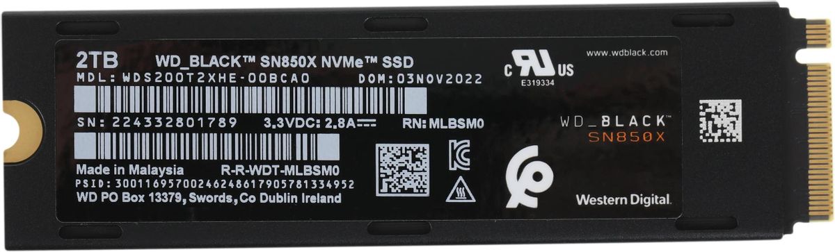 Накопитель SSD WD S PCIe 4.0 x4 2TB WDS200T2XHE Black SN850X M.2 2280