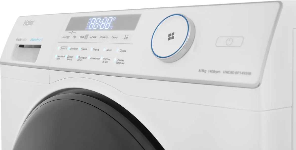 Стиральная машина HAIER HWD80-BP14959B, с фронтальной загрузкой, 8кг, 1400об/мин, с сушкой, инверторная
