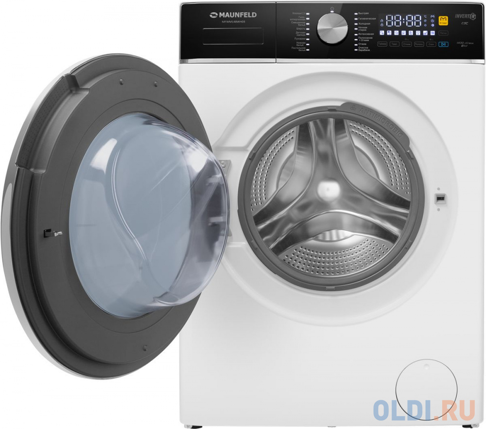 тиральная машина MAUNFELD MFWM148WH03, с фронтальной загрузкой, 8кг, 1400об/мин, инверторная