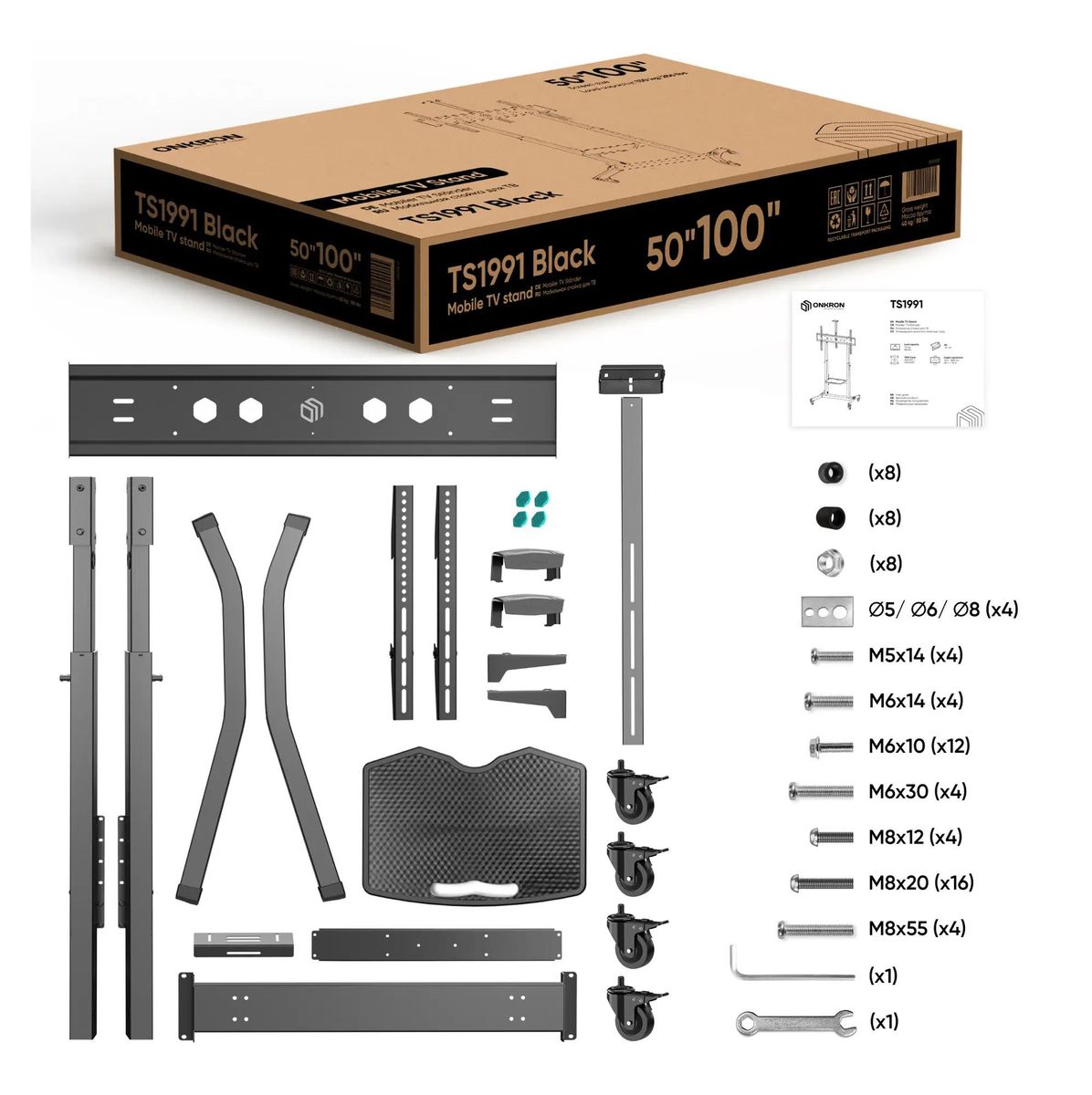 Стойка для телевизора ONKRON TS1991, 50-100", напольный, наклон, черный [ts1991-b]