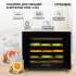Для засушки овощей, ягод, фруктов, трав и грибов отлично подойдёт сушильная камера HYUNDAI HYFD-1204. Она обладает мощностью 400 Вт и имеет четыре уровня. Для более комфортного использования предусмотрена регулировка температуры от 35 до 70°. Есть восемь поддонов шириной 18 см, глубиной 23,5 см и максимальной нагрузкой 3 кг. Вентилятор для просушивания размещен в вертикальном положении – это обеспечивает равномерную просушку, при которой не нужно переставлять поддоны. С сенсорной панелью управления справится каждый, а на небольшом дисплее отображается вся необходимая информация. Также можно воспользоваться таймером с отсрочкой времени до 24 часов. В комплекте идёт 4 поддона из стали и 4 поддона для приготовления пастилы.