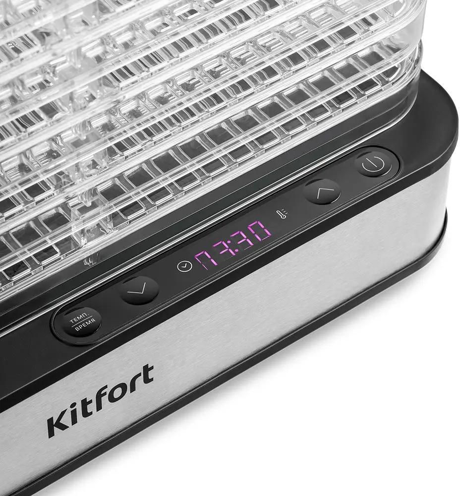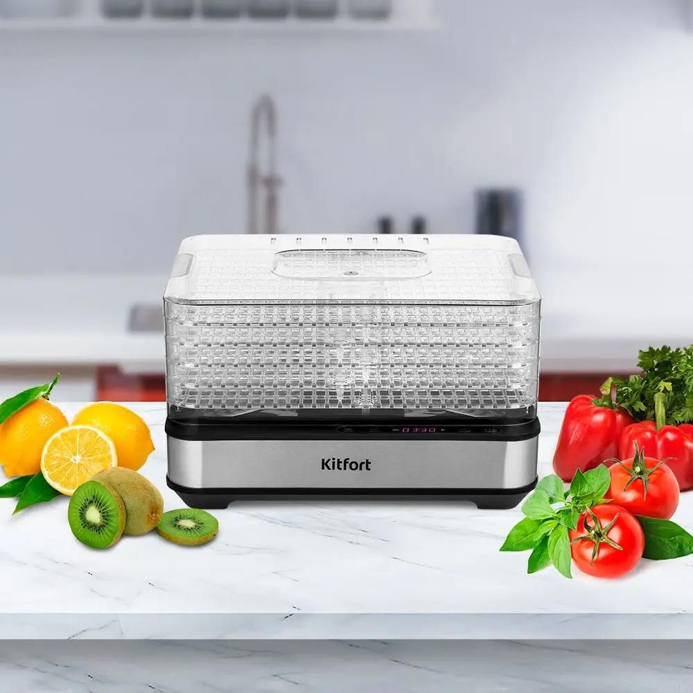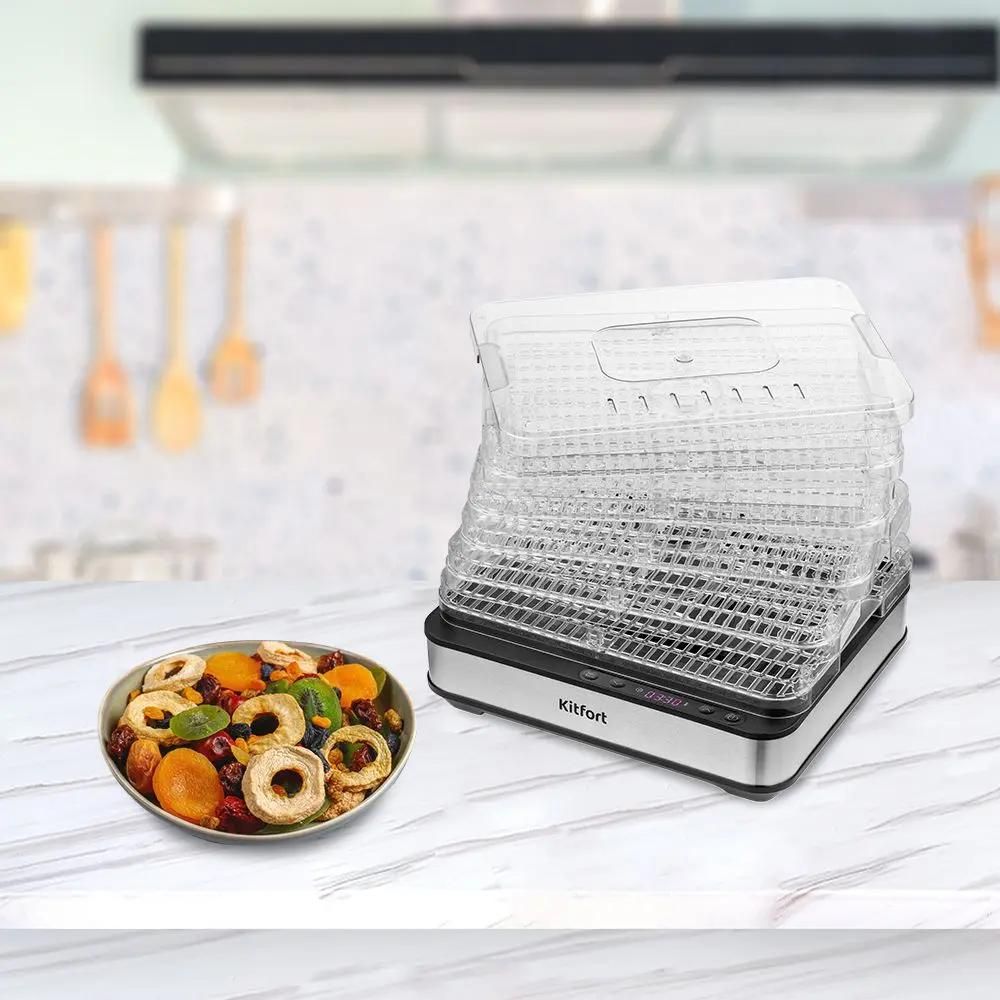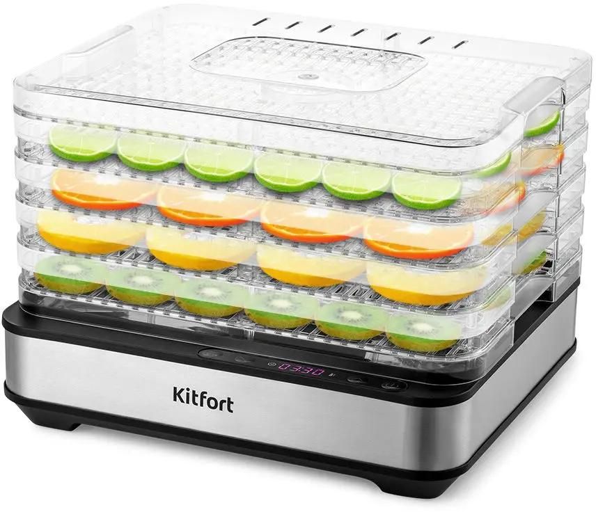 Сушилка для овощей и фруктов KitFort КТ-1933, нержавеющая сталь/черный, 5 поддонов