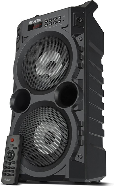 ффектная мобильная акустическая система повышенной мощности с возможностью беспроводного и проводного подключения, аккумуляторным питанием, встроенным картридером, FM-тюнером, USB-портом и LED-подсветкой. Производителем позиционируется как доступный продукт средней ценовой категории, предназначенный для пользователей, желающих получить носимую колонку умеренного веса (2,2 кг) для акустического оформления помещений площадью до 25 м² и небольших открытых площадок.Комплектуется отдельным пультом ДУ. Оборудована двумя динамическими излучателями мощностью диаметром 95 мм и суммарной номинальной мощностью 20 Вт. Производитель декларирует воспроизведение широкого частотного диапазона от 100 до 20000 Гц, которого вполне достаточно для качественного проигрывания музыкальных композиций различных популярных жанров. Выраженный басовый акцент звучания акустической системы Sven PS-440 особенно подходит для воспроизведения электронной танцевальной, поп-музыки и хип-хопа. Для организации беспроводного подключения к любому современному смартфону, планшету или ноутбуку применяется интерфейс bluetooth. Предусмотрен микрофонный вход для исполнения песен в режиме караоке. Создать праздничную атмосферу на вечеринке поможет управляемая разноцветная LED подсветка.