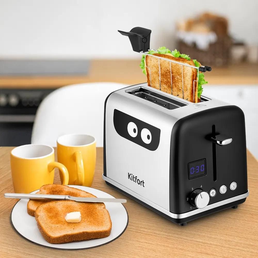 Тостер KitFort КТ-6219, нержавеющая сталь/черный