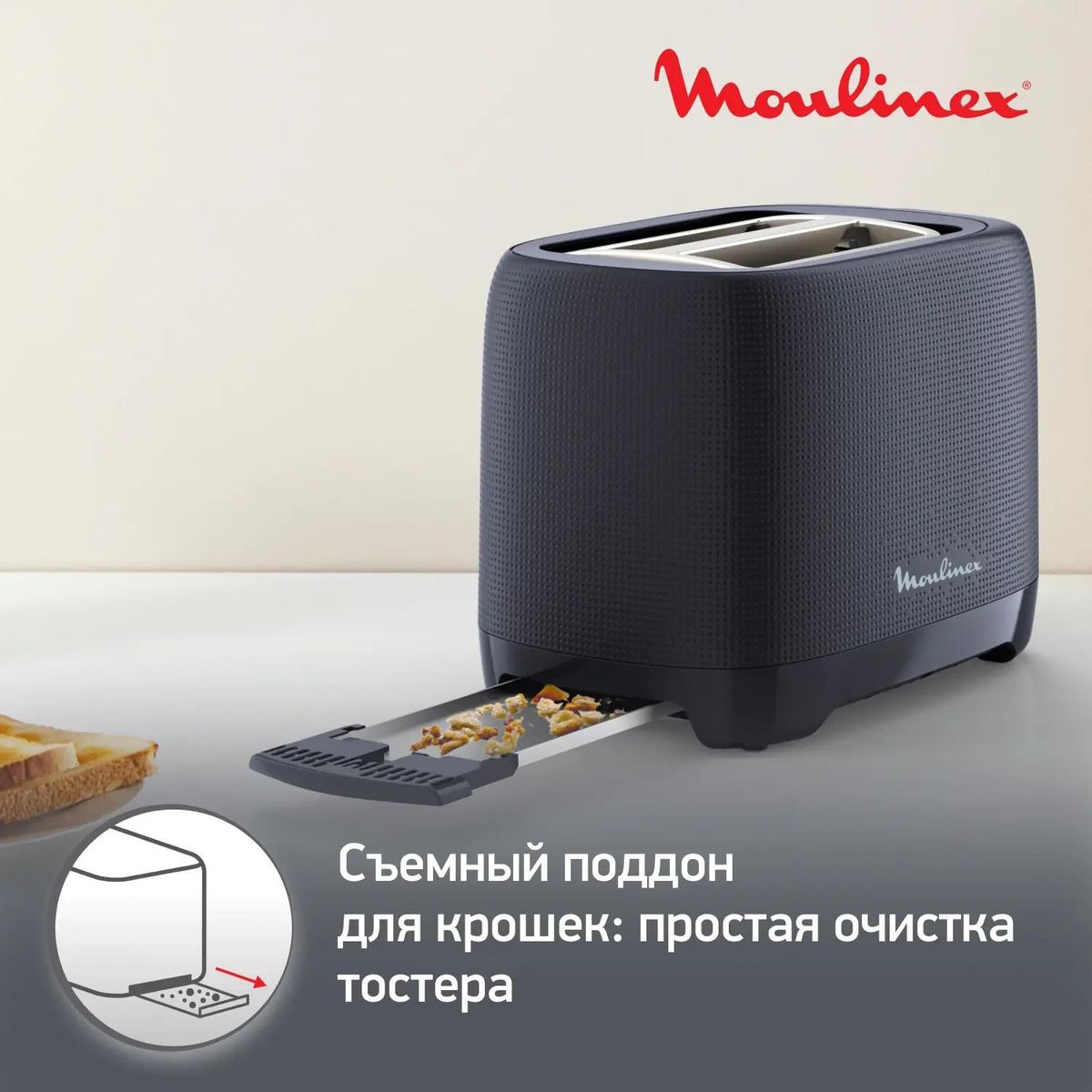 Сделайте каждое утро особенным вместе с тостером Morning от Moulinex с двумя отделениями. Его минималистичный, но при этом запоминающийся дизайн позволяет ему стать настоящим украшением любой кухни. Позволяет с легкостью доставать тосты любого размера после приготовления. Выберите любой из 7 уровней подрумянивания и получите именно тот тост, который вы любите больше всего. Все крошки в процессе работы собираются в специальный лоток, который можно легко снять и очистить. Тонко нарезанный батон или толстый ломоть цельнозерновой буханки – широкие отделения позволяют поджаривать хлеб любого размера по вашему вкусу. Остановите поджаривание в любой удобный момент и получите именно ту корочку, которую хотите. Откройте всю коллекцию Morning!